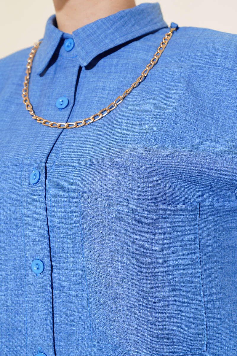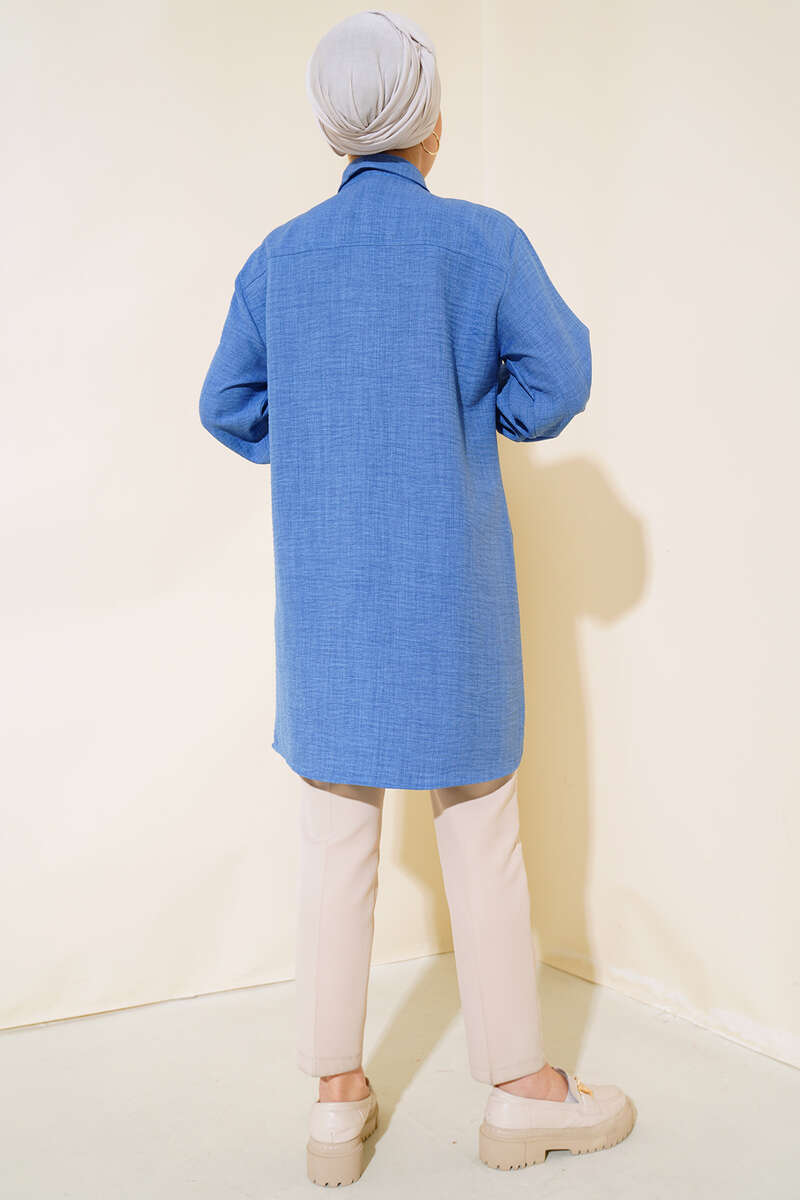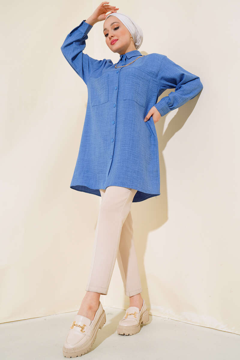 Göğsü Çift Cepli Salaş Gömlek İndigo