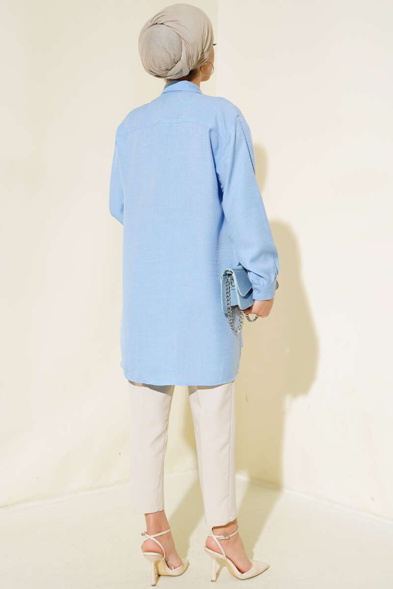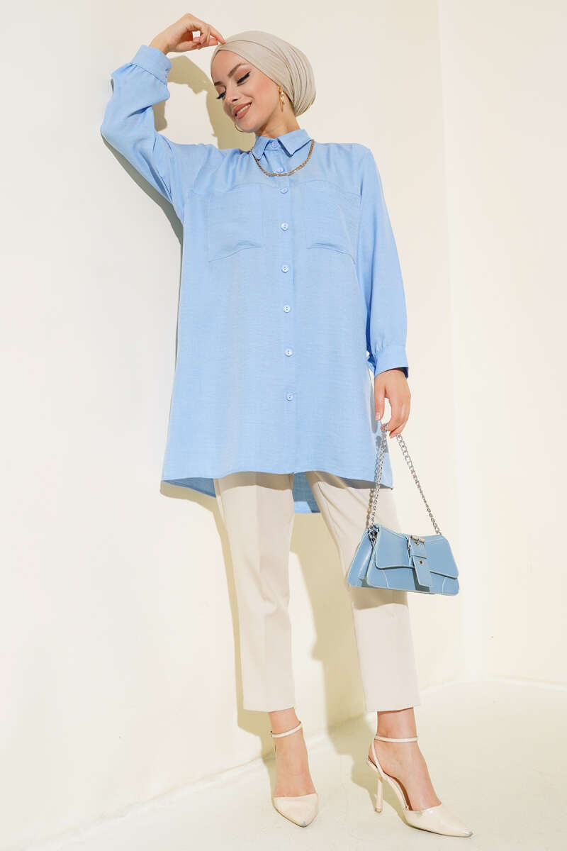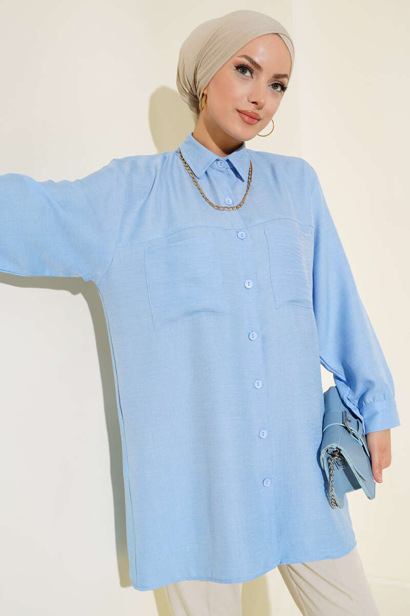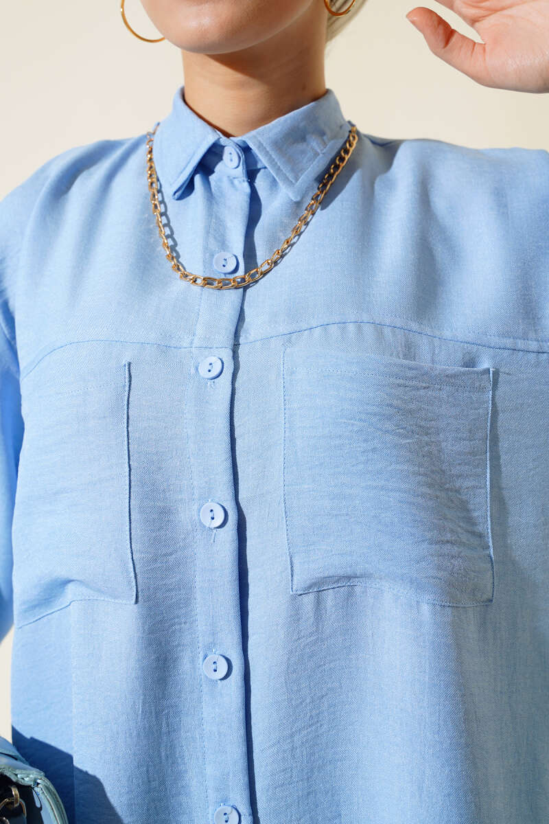 Göğsü Çift Cepli Salaş Gömlek Mavi