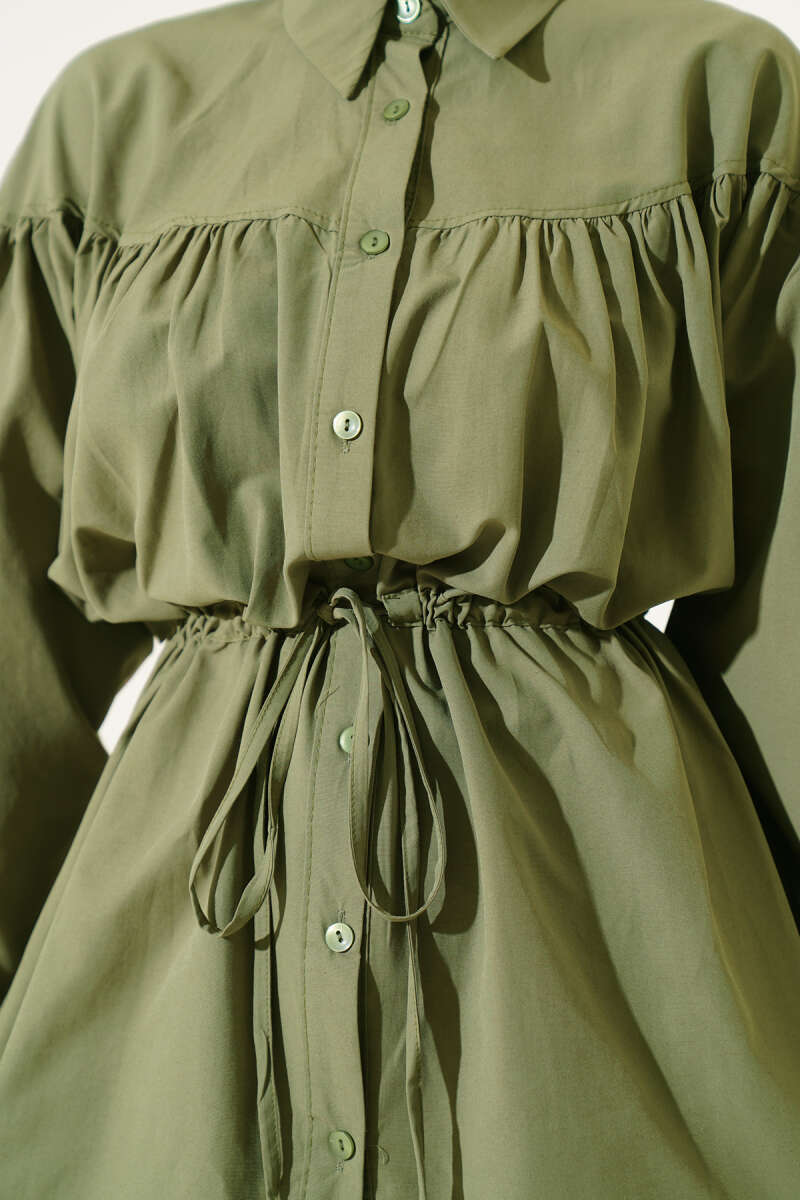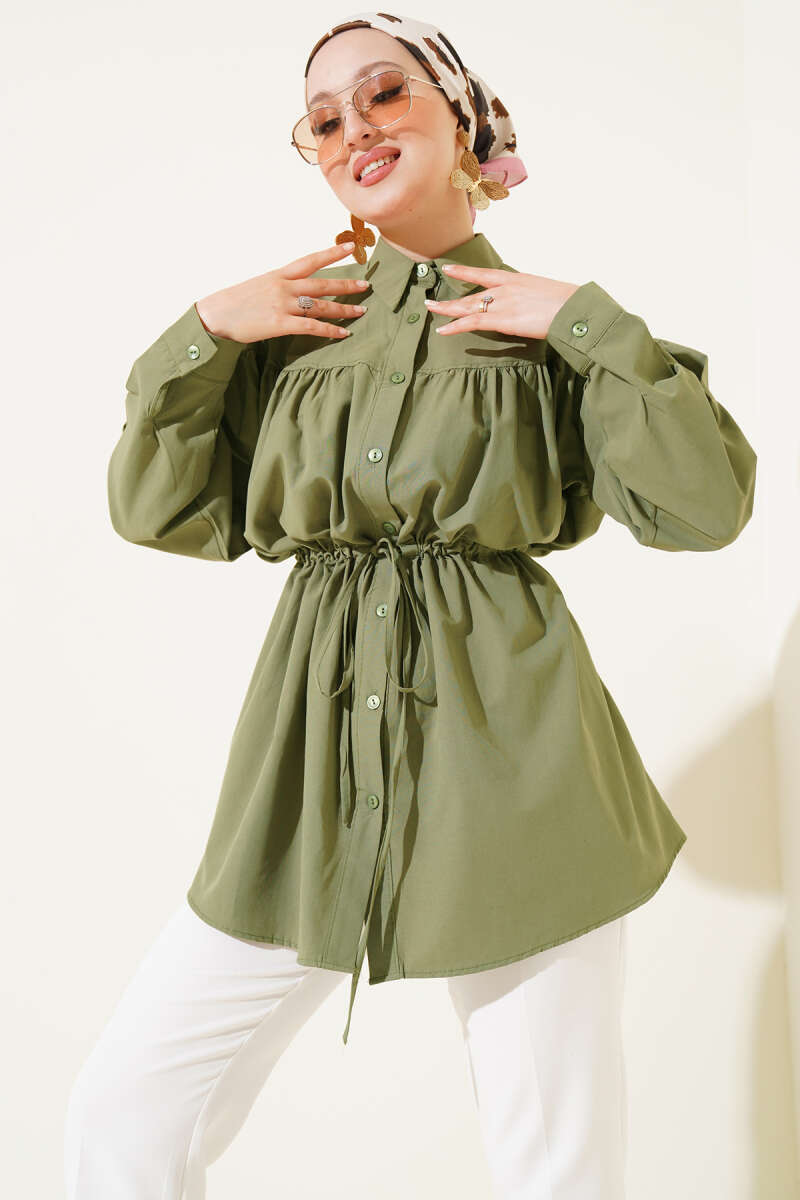 Gizli Düğmeli Bel Kuşaklı Gömlek Sarı