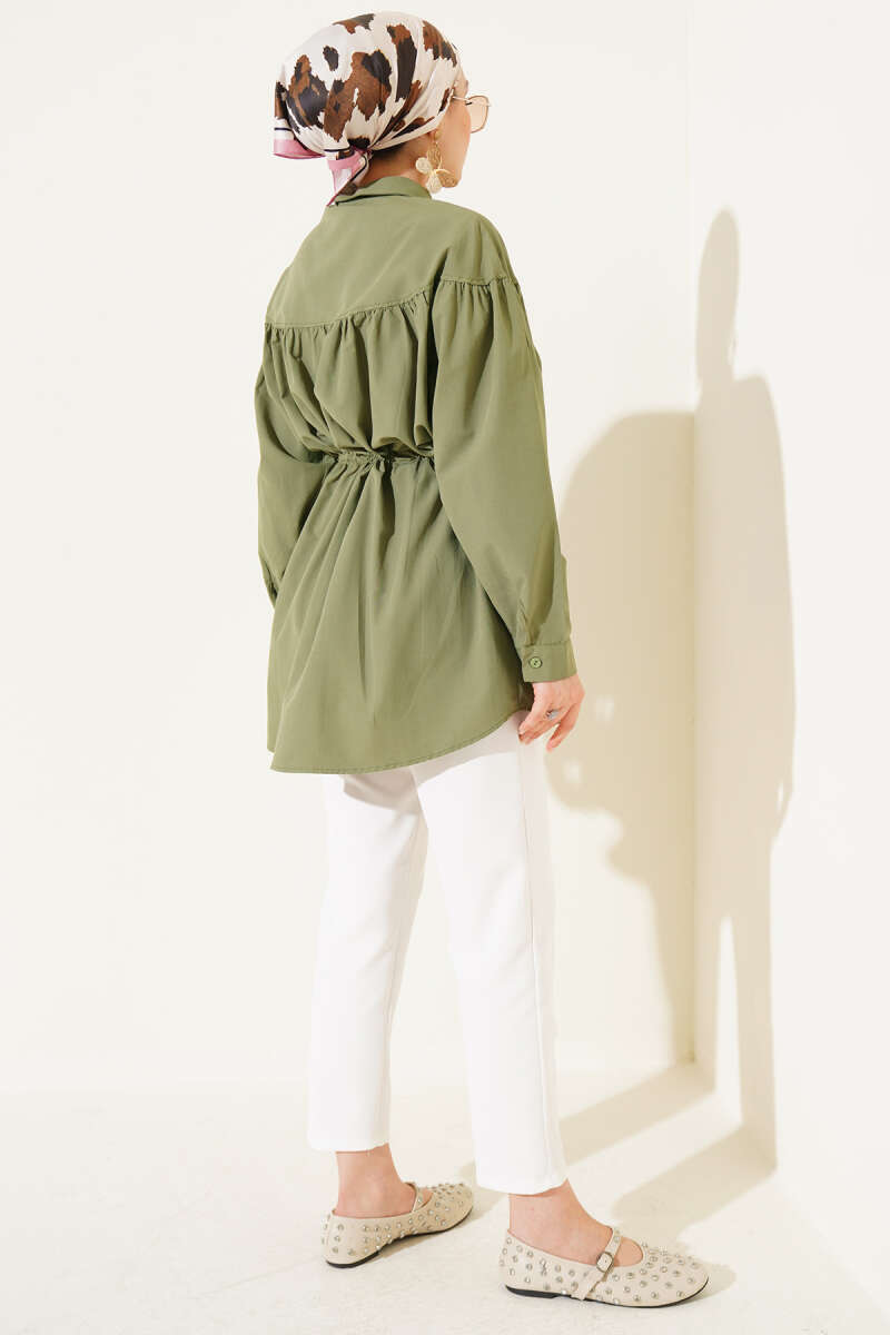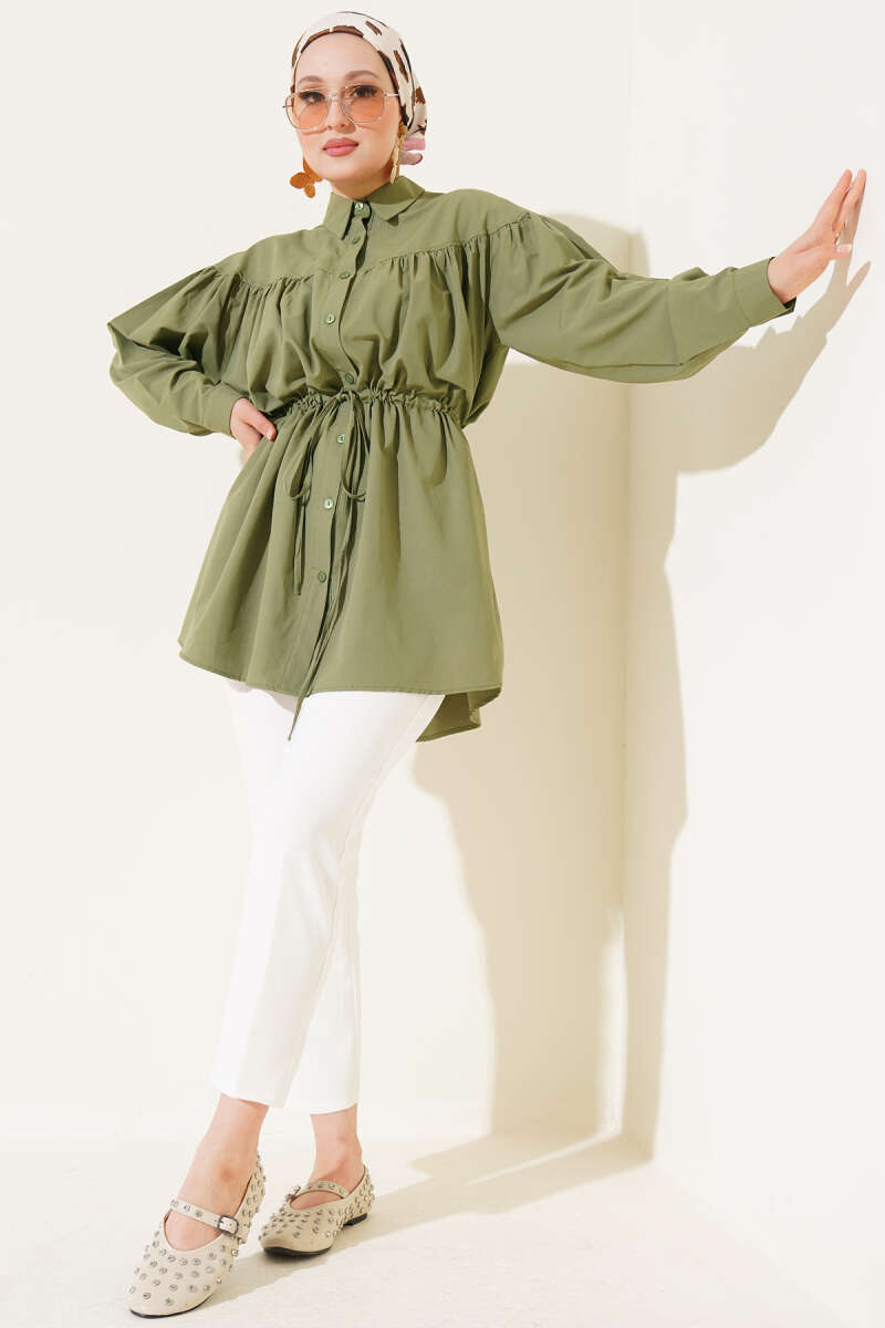Yaka Bağlamalı Saten Gömlek Yeşil