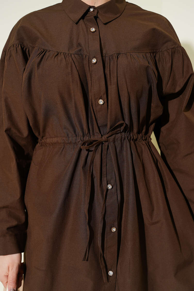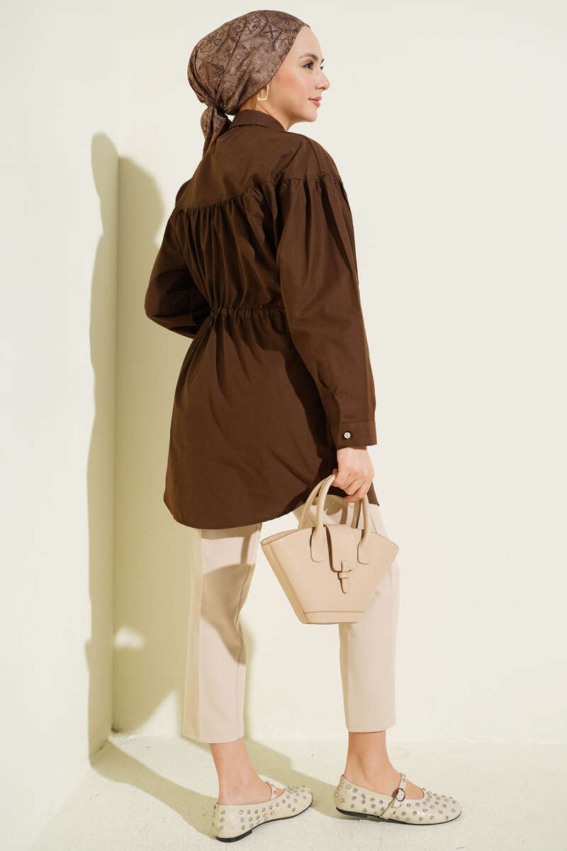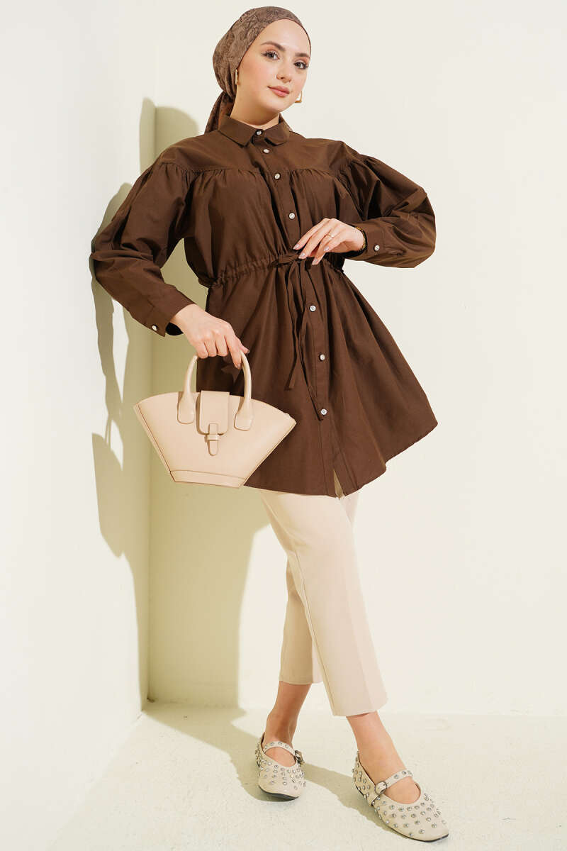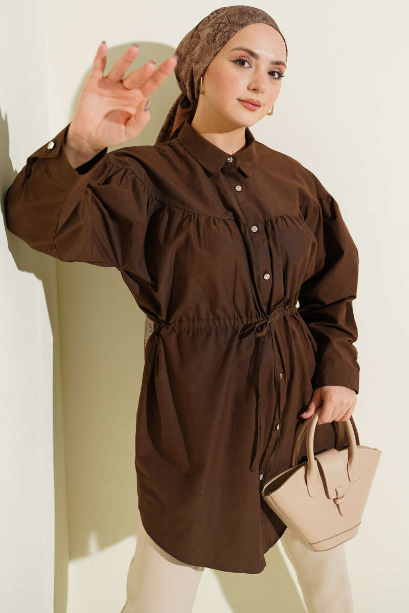 Göğüs Büzgülü Bel Tünelli Gömlek Kahve