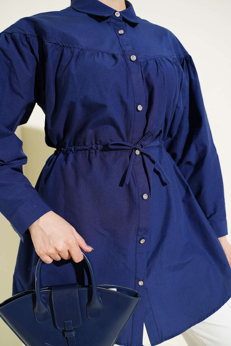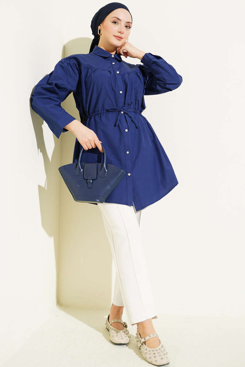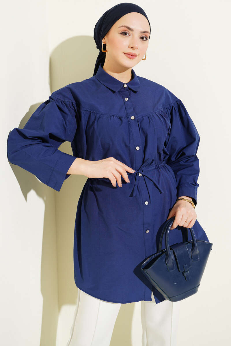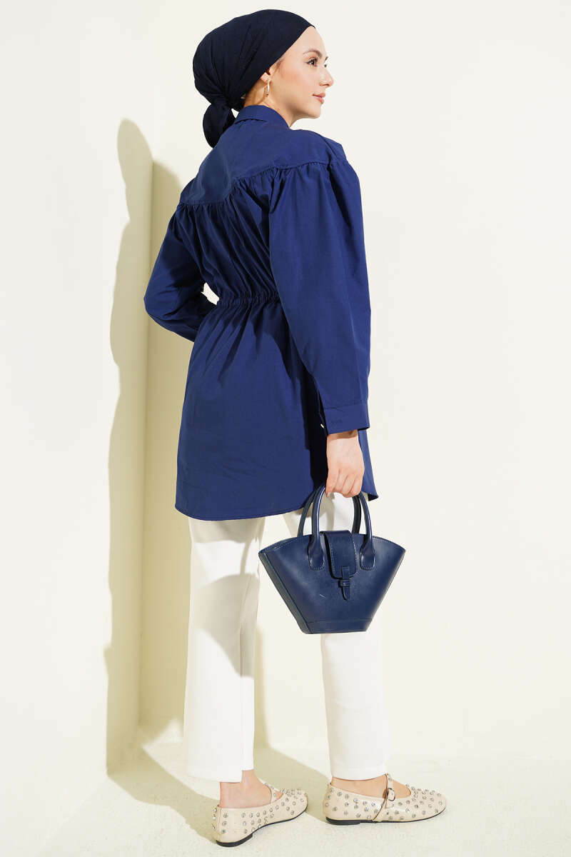 Göğüs Büzgülü Bel Tünelli Gömlek Lacivert