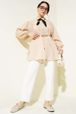 fotoğrafta gözüktüğü gibi rengi Kumaşı çok güzel mevsimlik 60 kilo M beden aldım güzel durdu