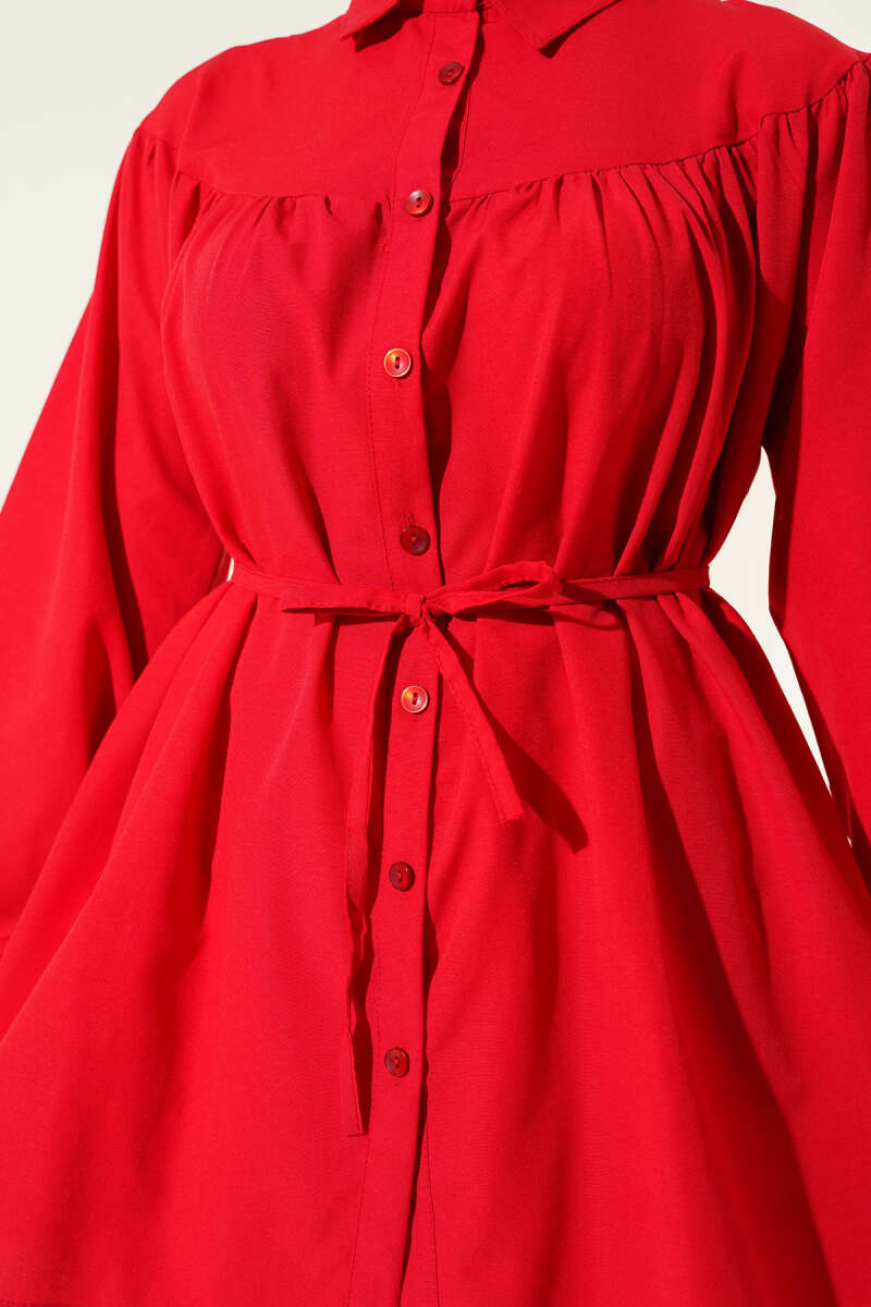 Yarım Düğmeli Patlı Kat Elbise Çağla Yeşili