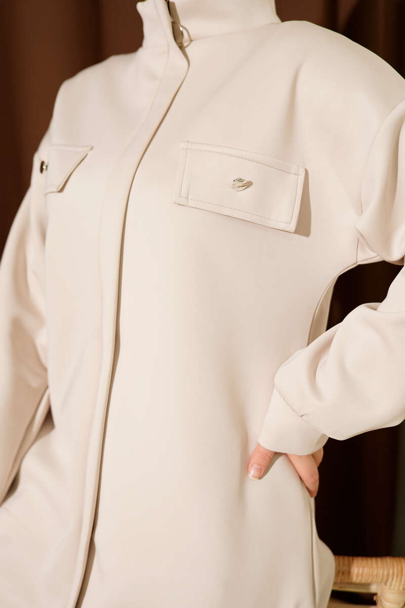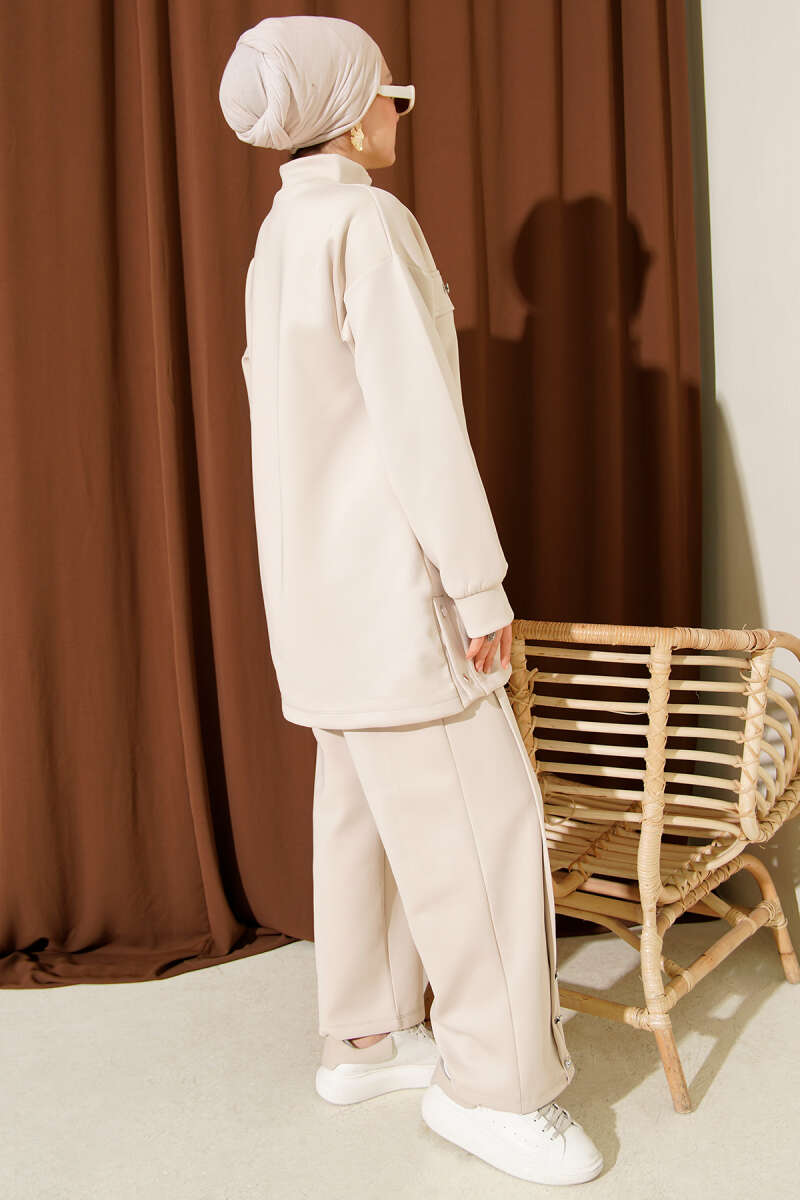 Metal Düğmeli Fermuarlı Scuba İkili Takım Vizon