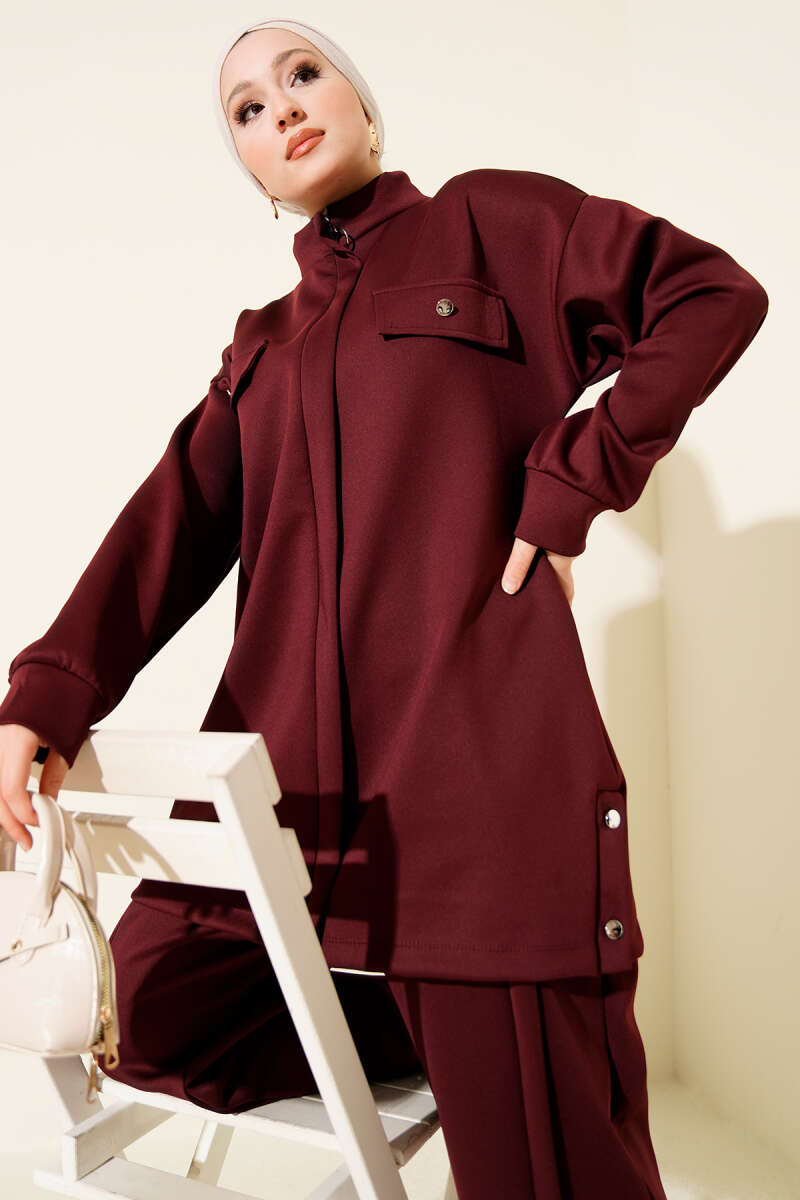 Loyşa Çıtçıtlı Kanguru Cepli Tunik Kahve