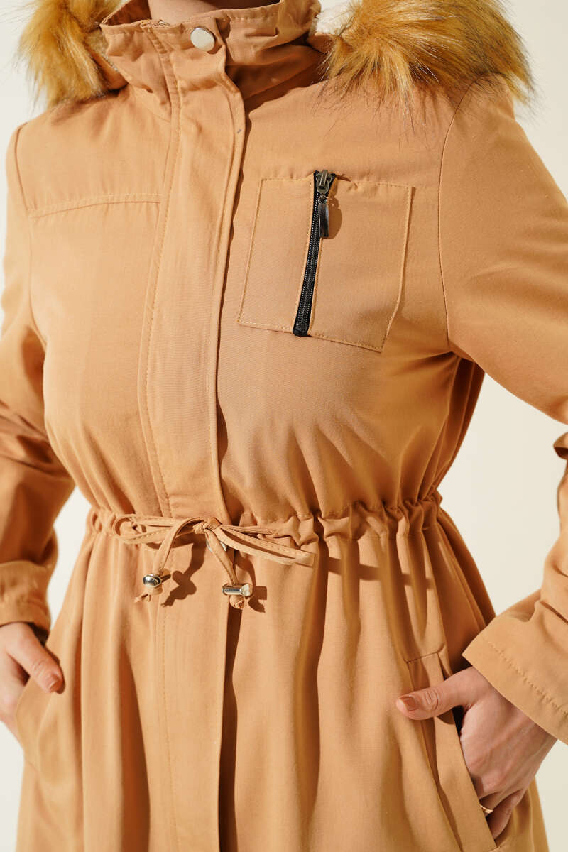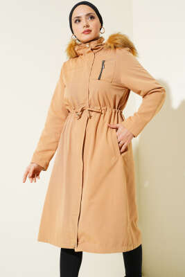 Bilekleri Lastikli Kaşe Kaban Kahve
