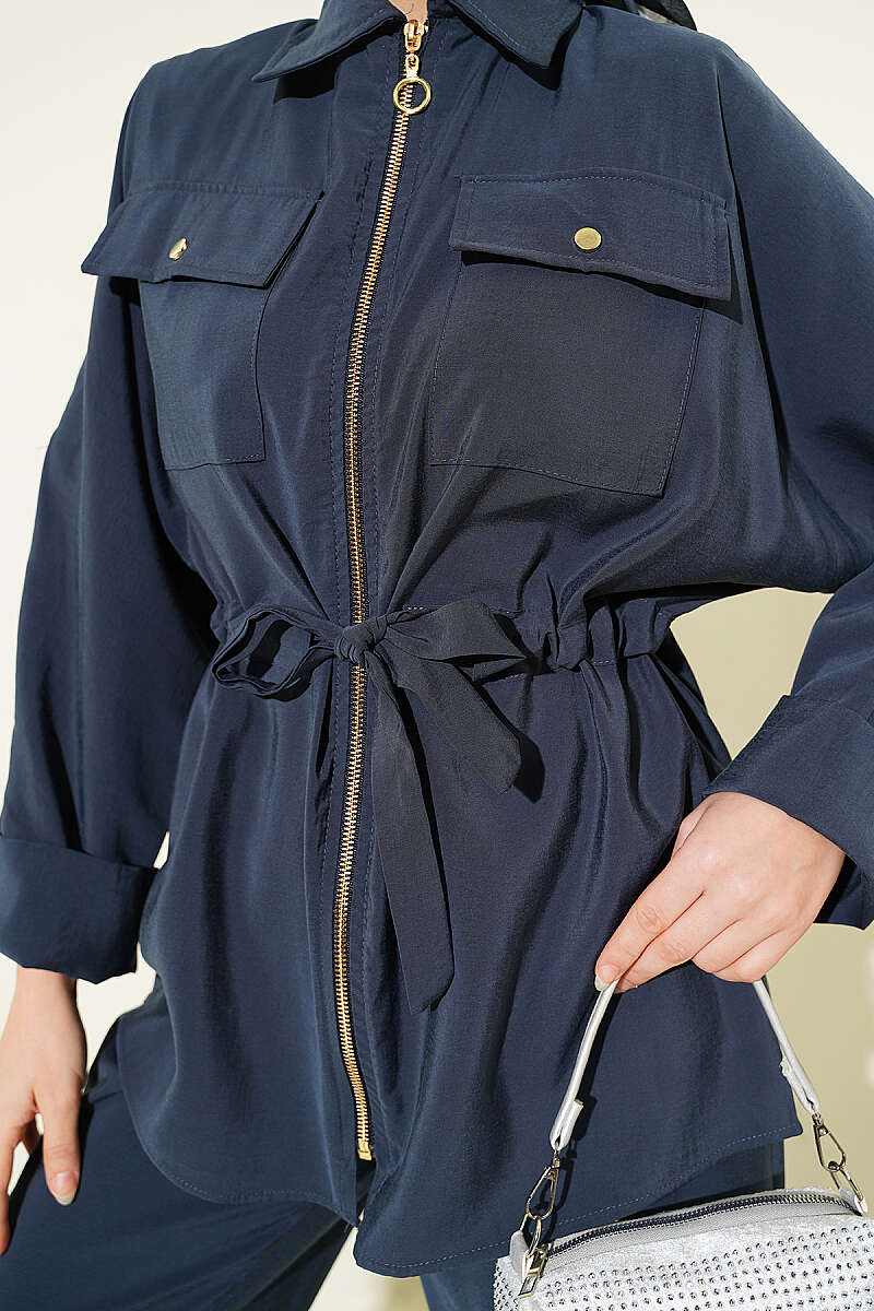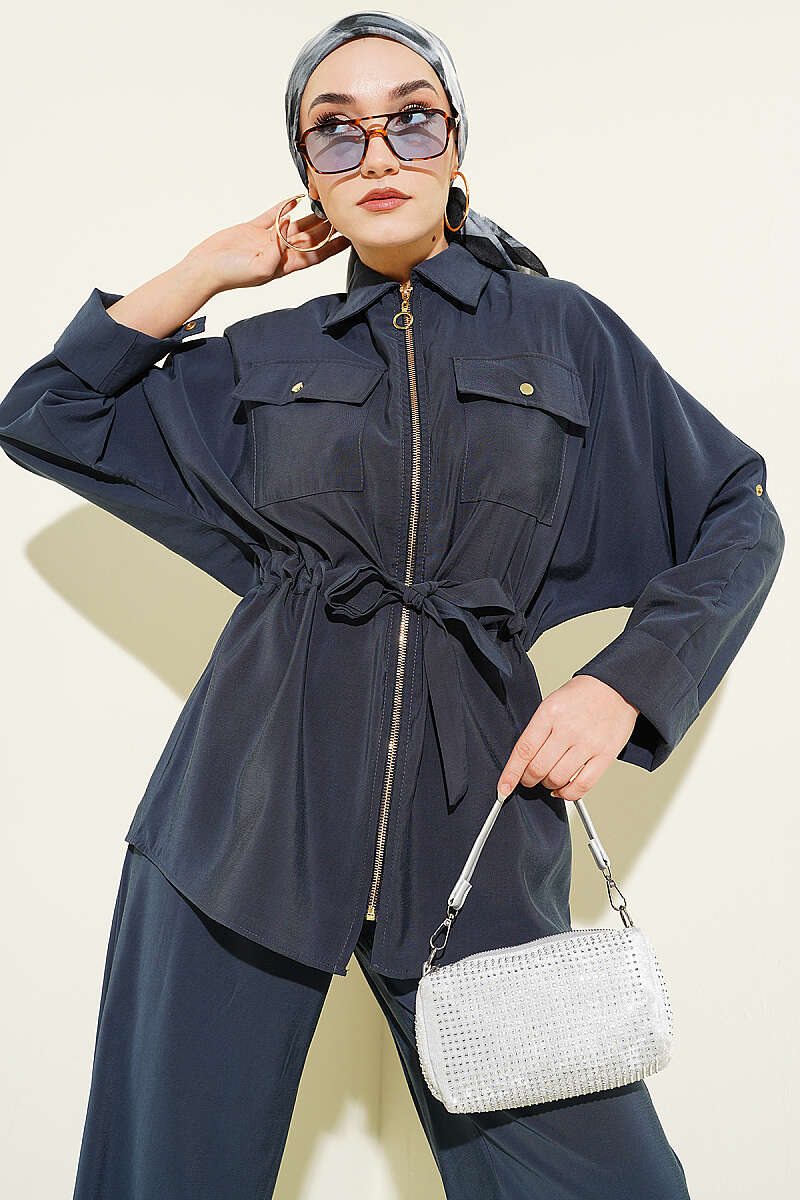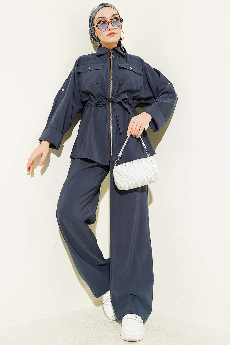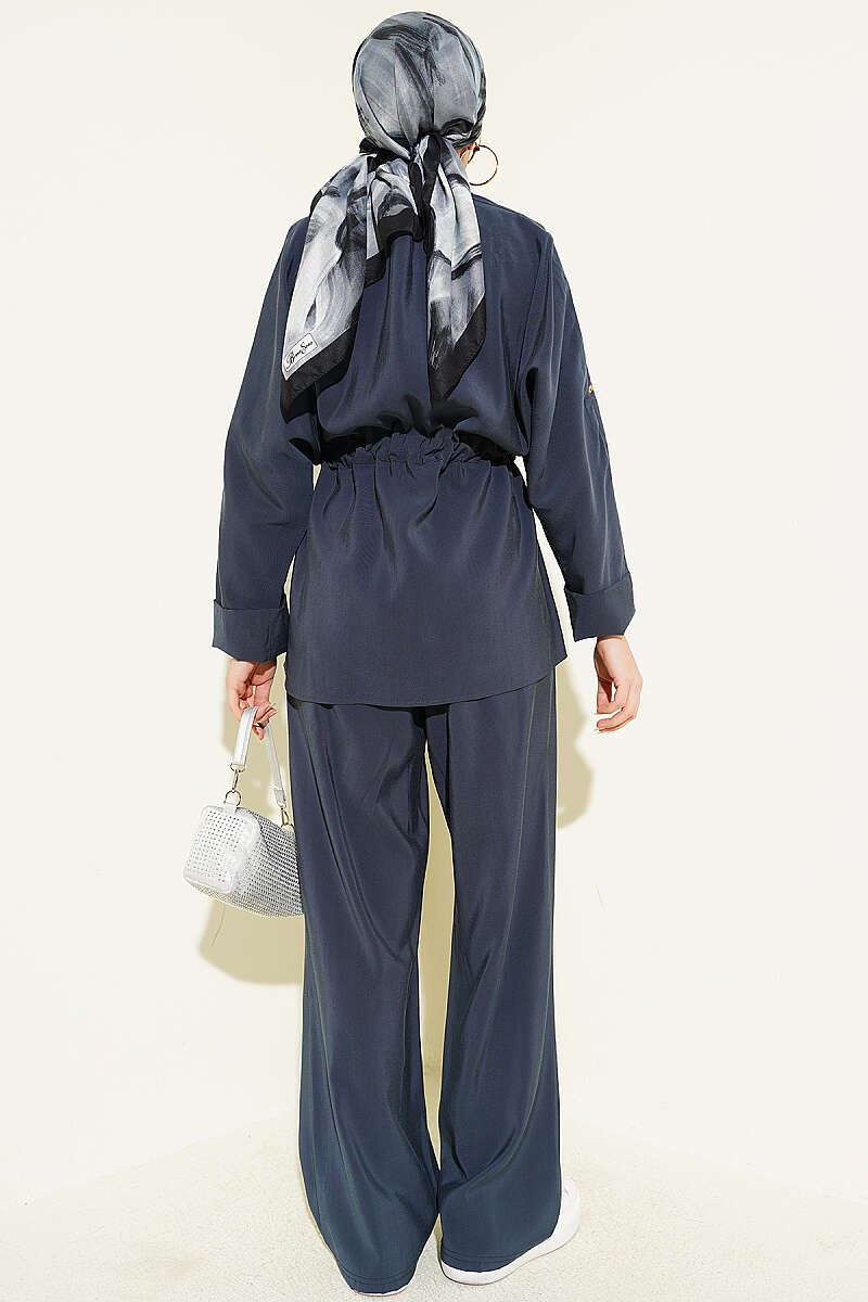 Bel Büzgülü Yelekli İki Takım Lacivert