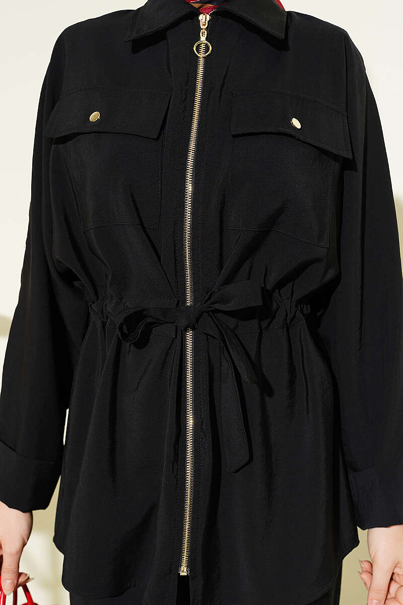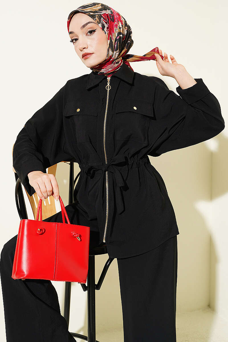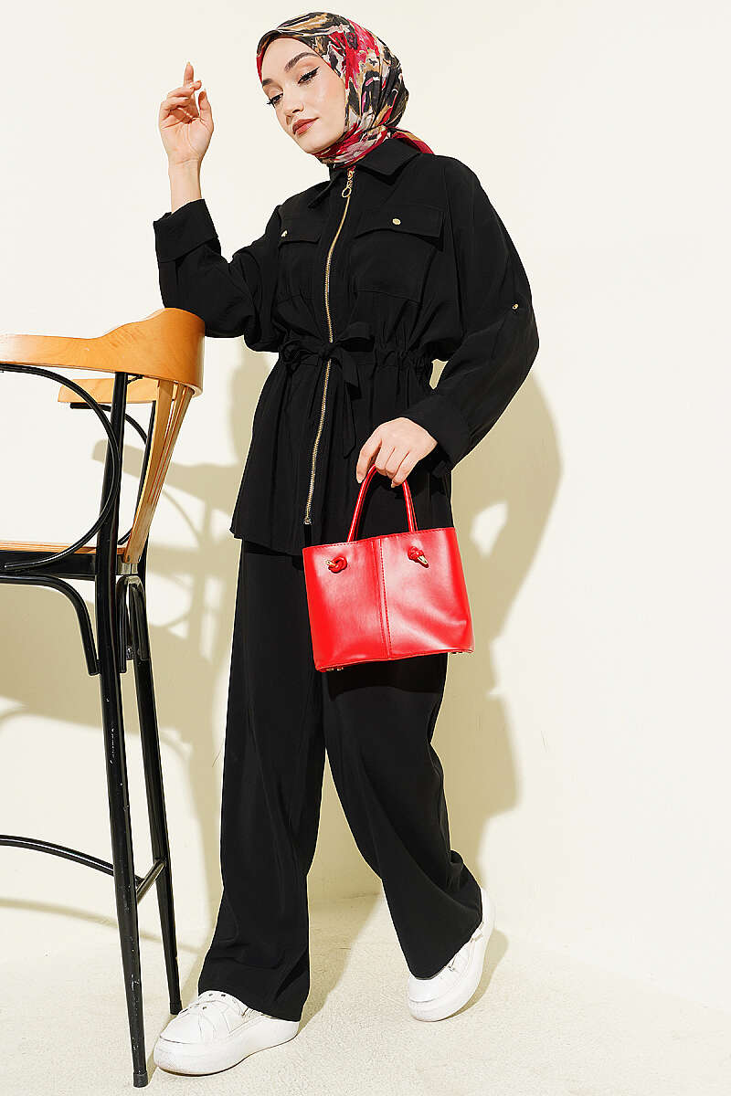 Göğüs Cepli Bel Tünelli Modal Takım Siyah