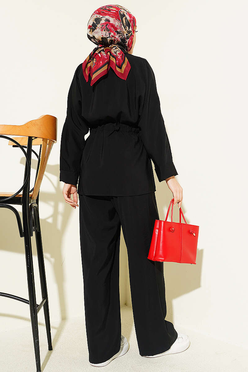 Bel Pensli Kendinden Kuşaklı Takım Siyah