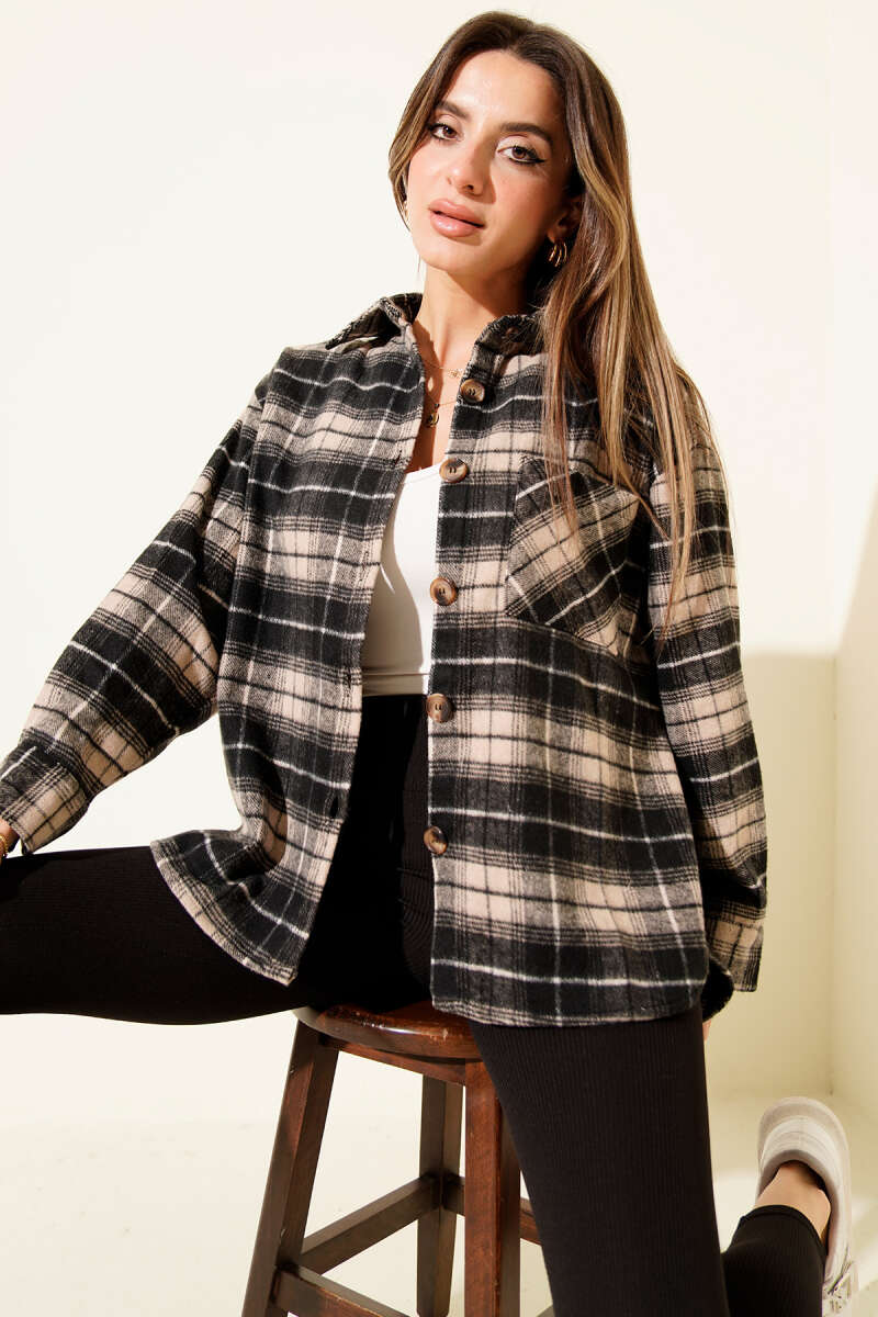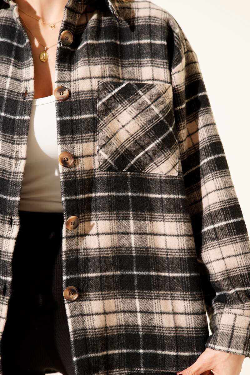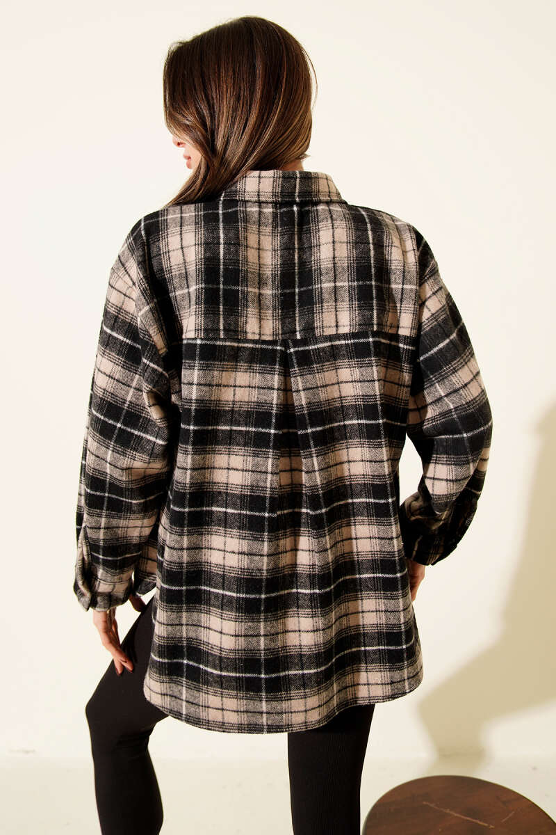 Göğüs Cepli Ekoseli Oduncu Gömlek Bej