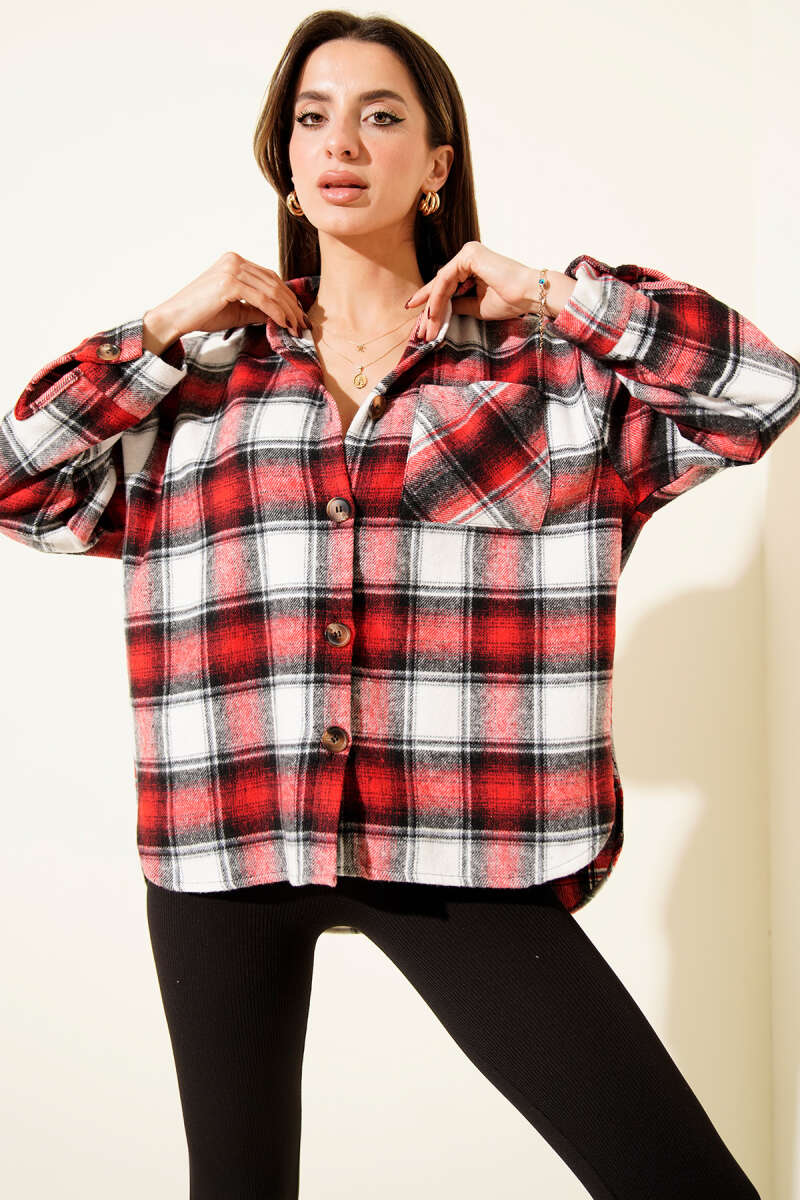 Göğüs Cepli Ekoseli Oduncu Gömlek Bordo