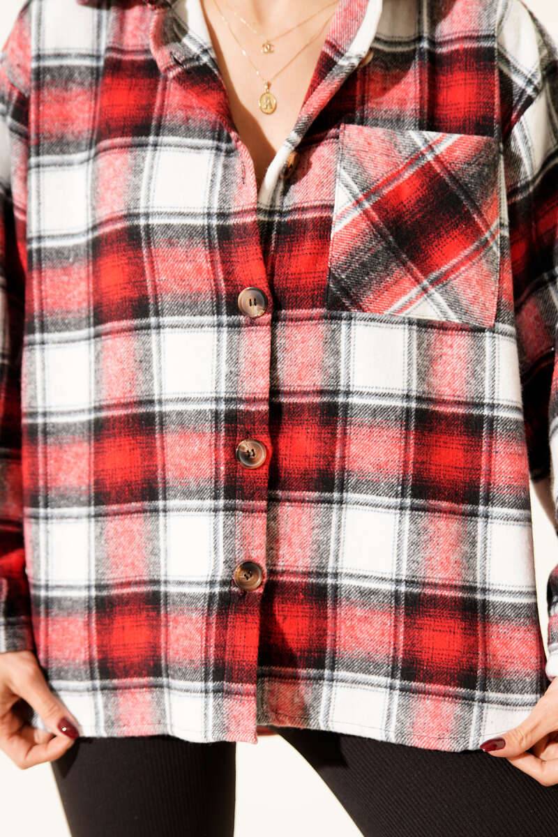 Göğüs Cepli Ekoseli Oduncu Gömlek Kırmızı