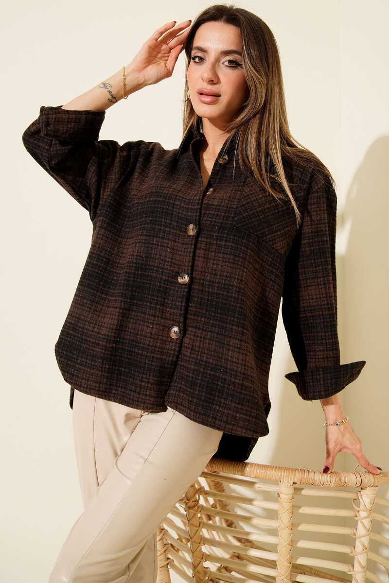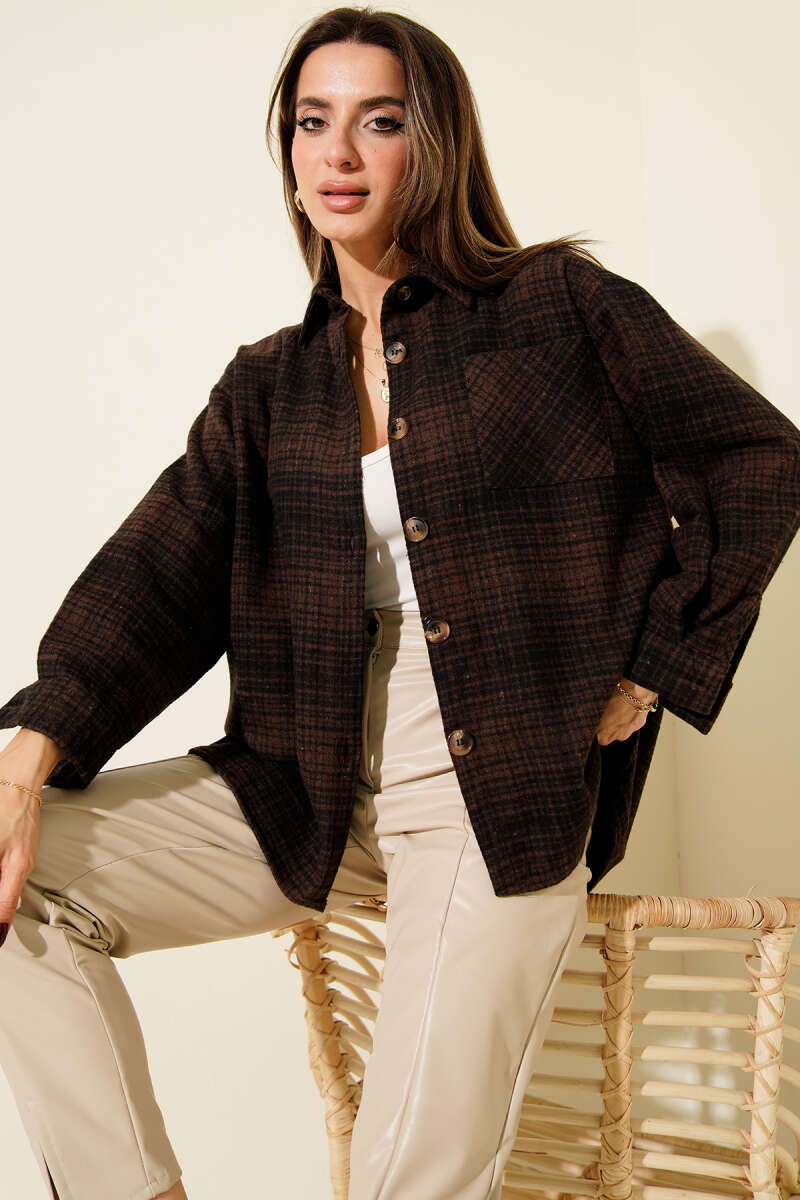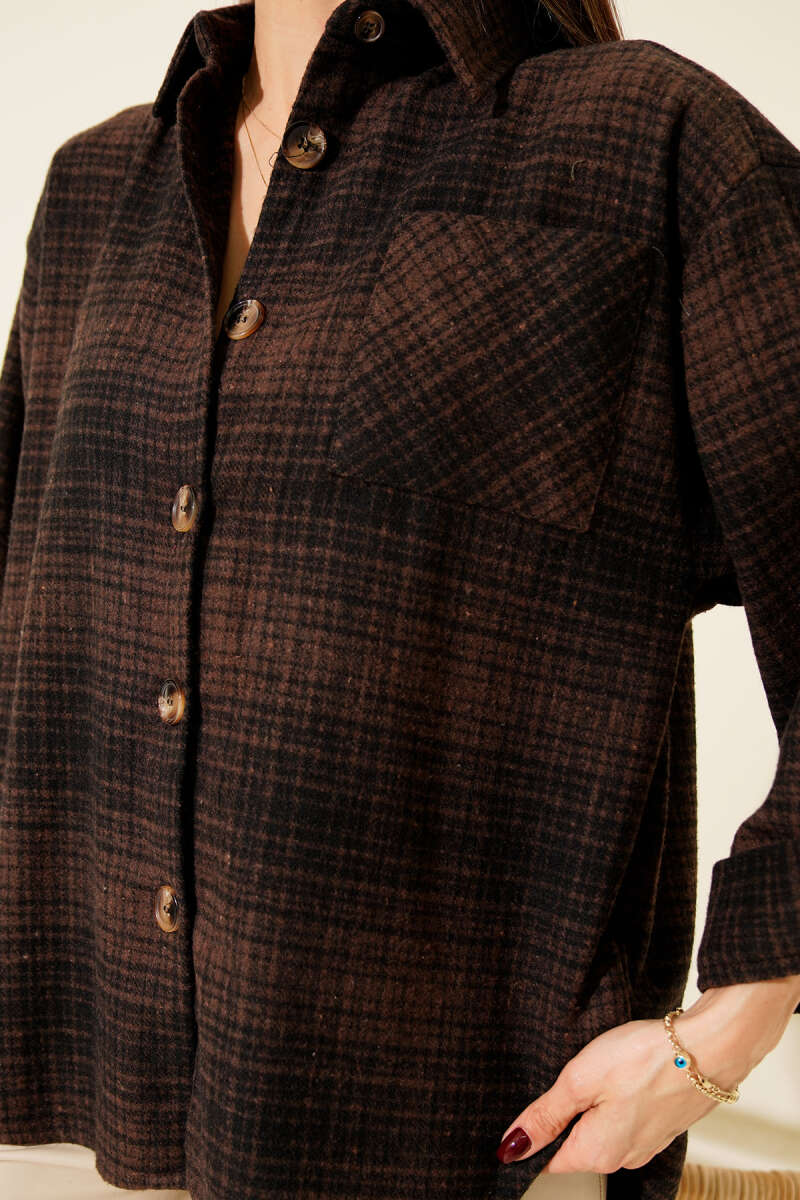 Göğüs Cepli Ekoseli Oduncu Gömlek Kahve