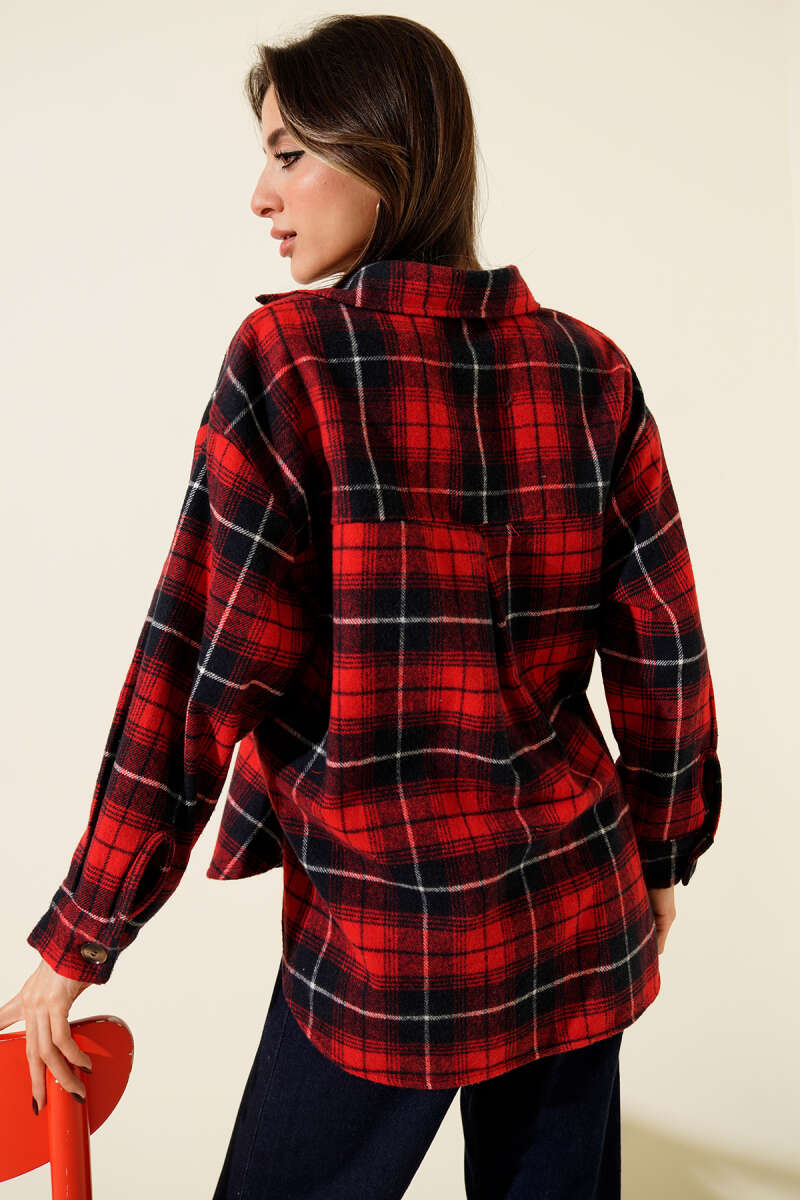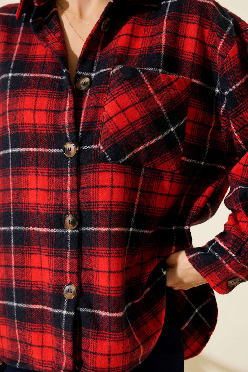Göğüs Cepli Ekoseli Oduncu Gömlek Kırmızı