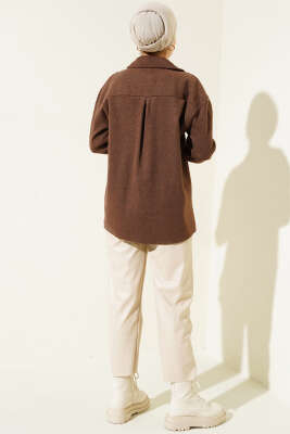 Balıkçı Yaka Fitilli Salaş Triko Tunik Kahve