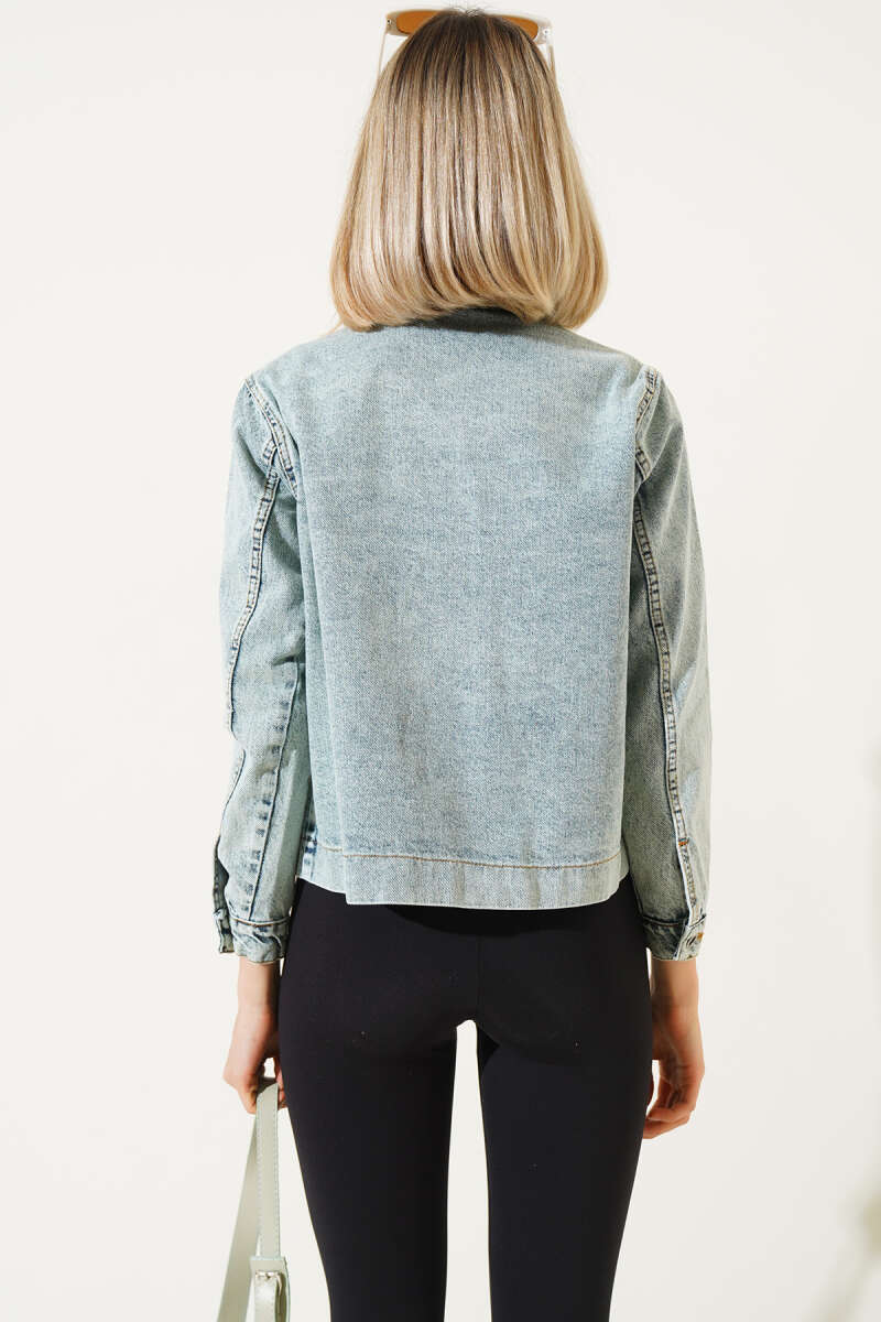 Bel Lastikli Çift Düğmeli Kot Pantolon Lacivert