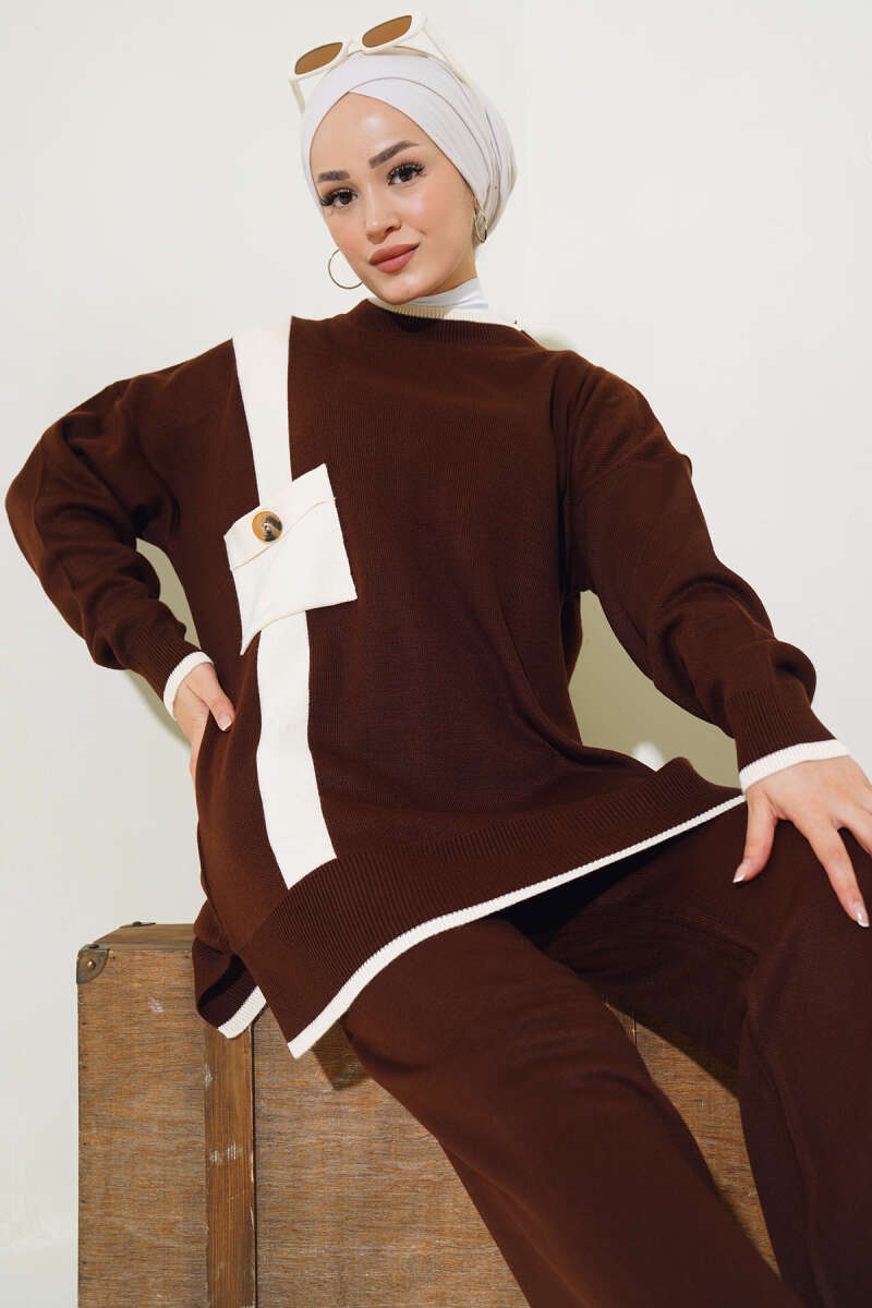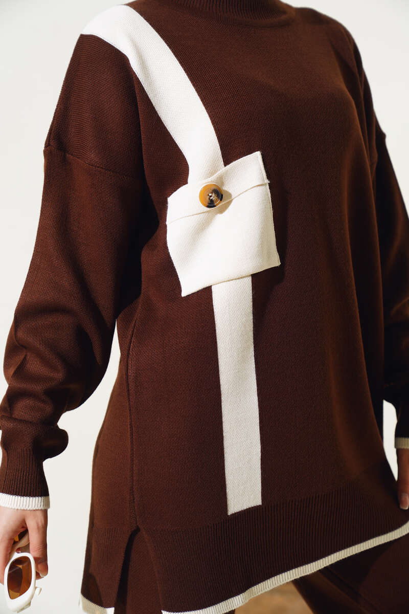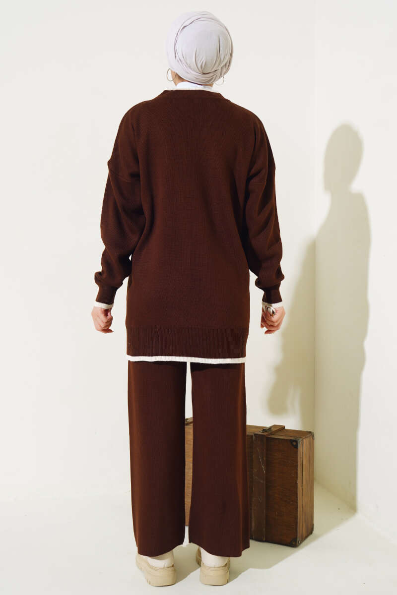 Balon Kol Balıkçı Yaka Triko İkili Takım Kahve