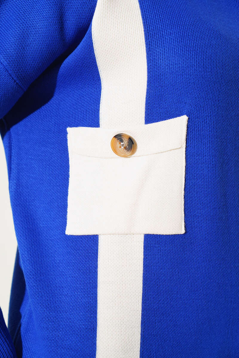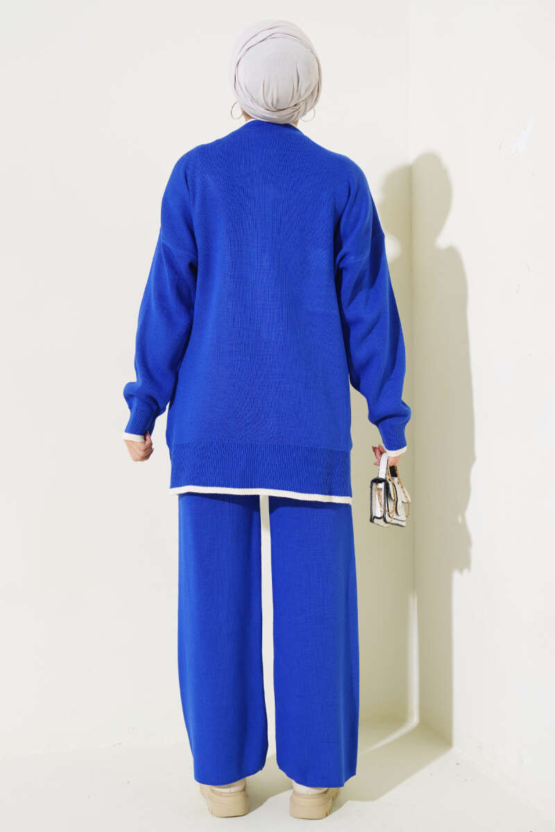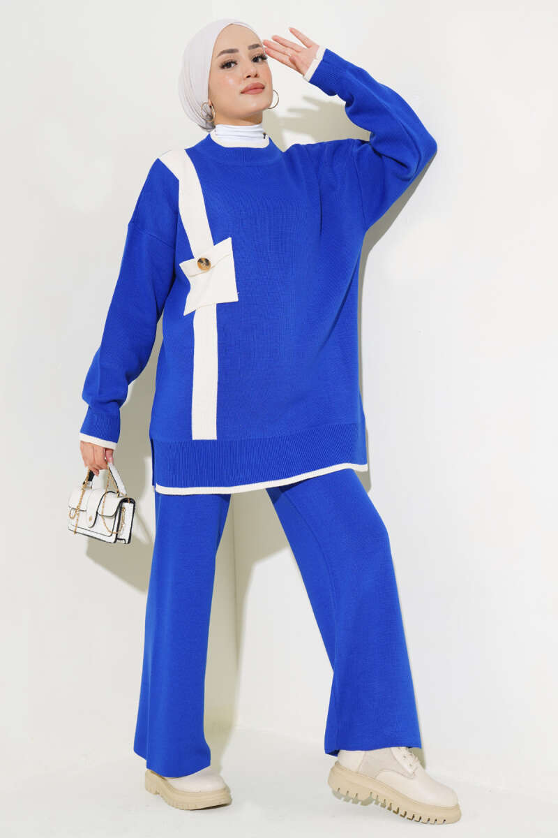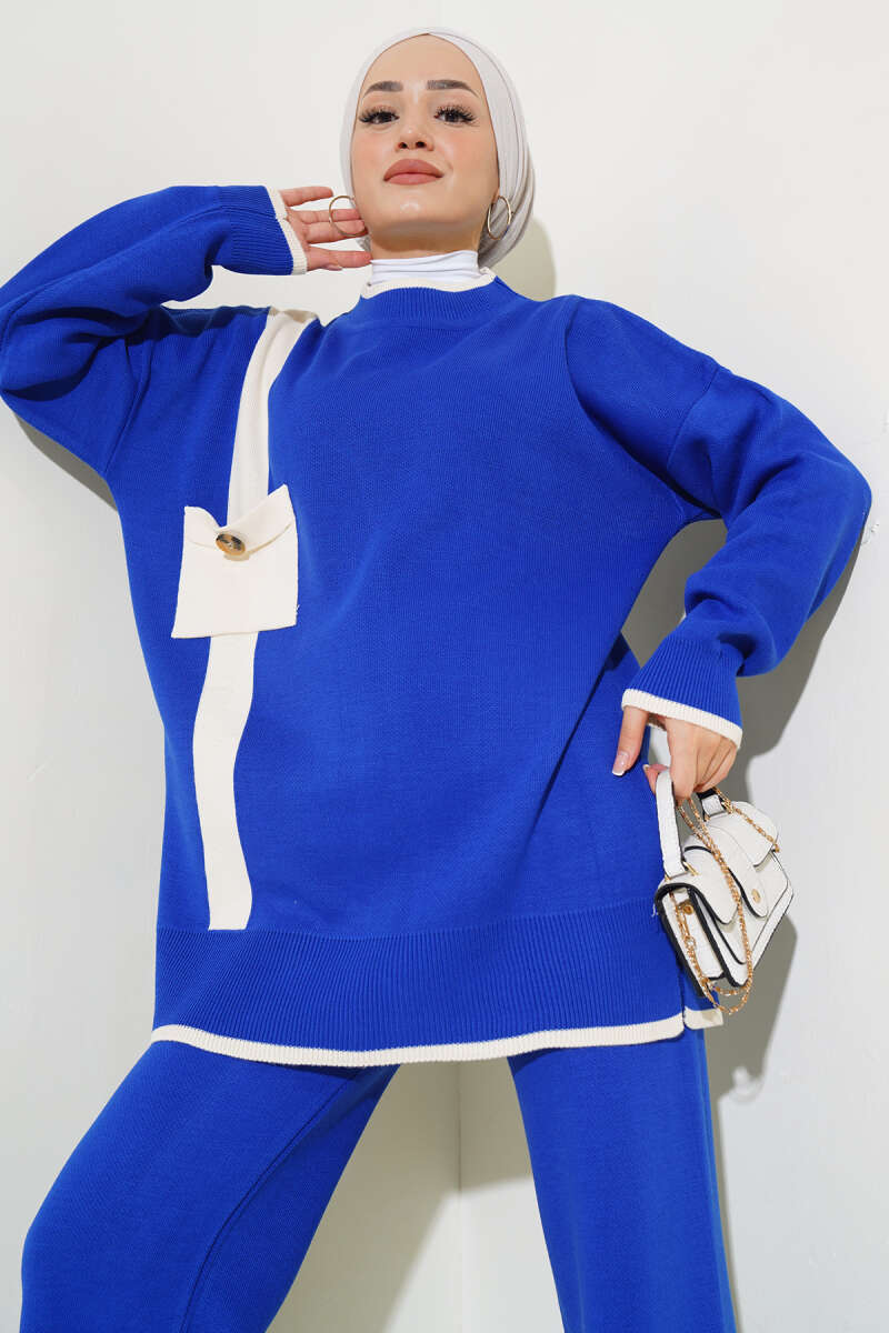 Taşlı Baklava Desen Triko İkili Takım Buz Mavisi