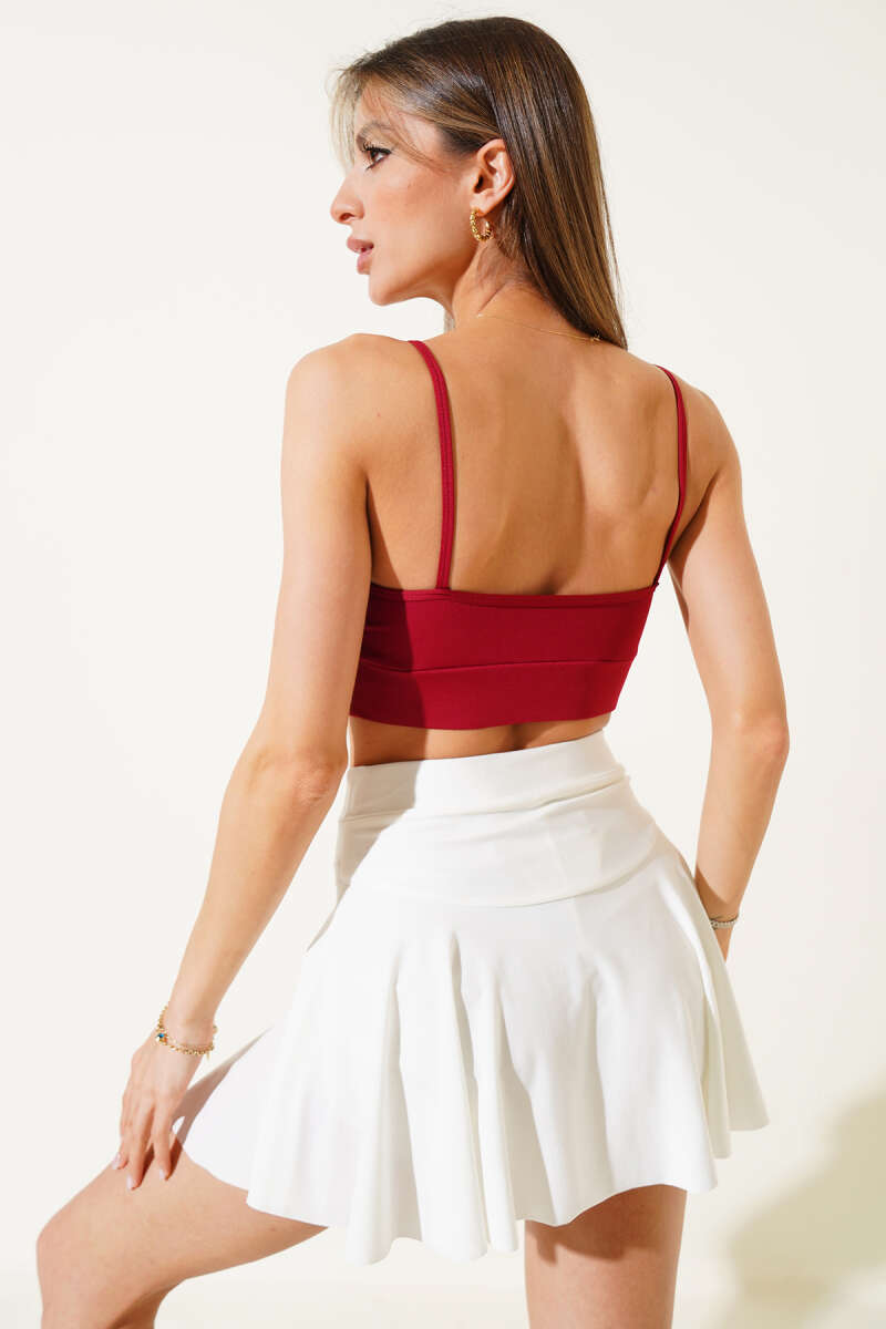 Omuz Vatkalı Degaje Yaka Sandy Bluz Bordo