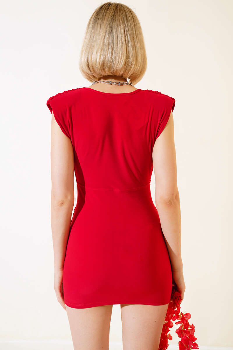 Bilek Düğmeli Fitilli Triko Tunik Kahve