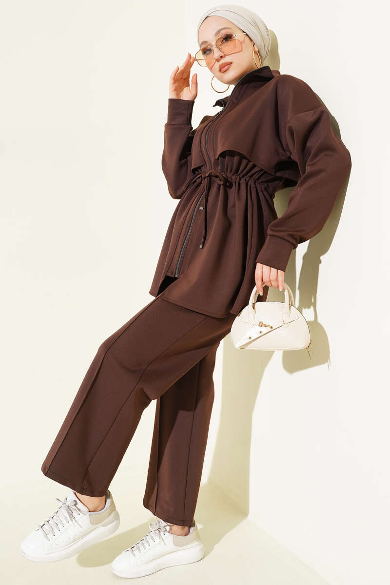 Göğüs Parçalı Tünelli Scuba İkili Takım Kahve