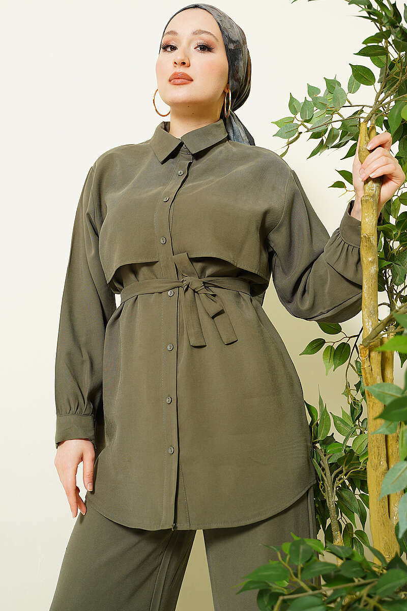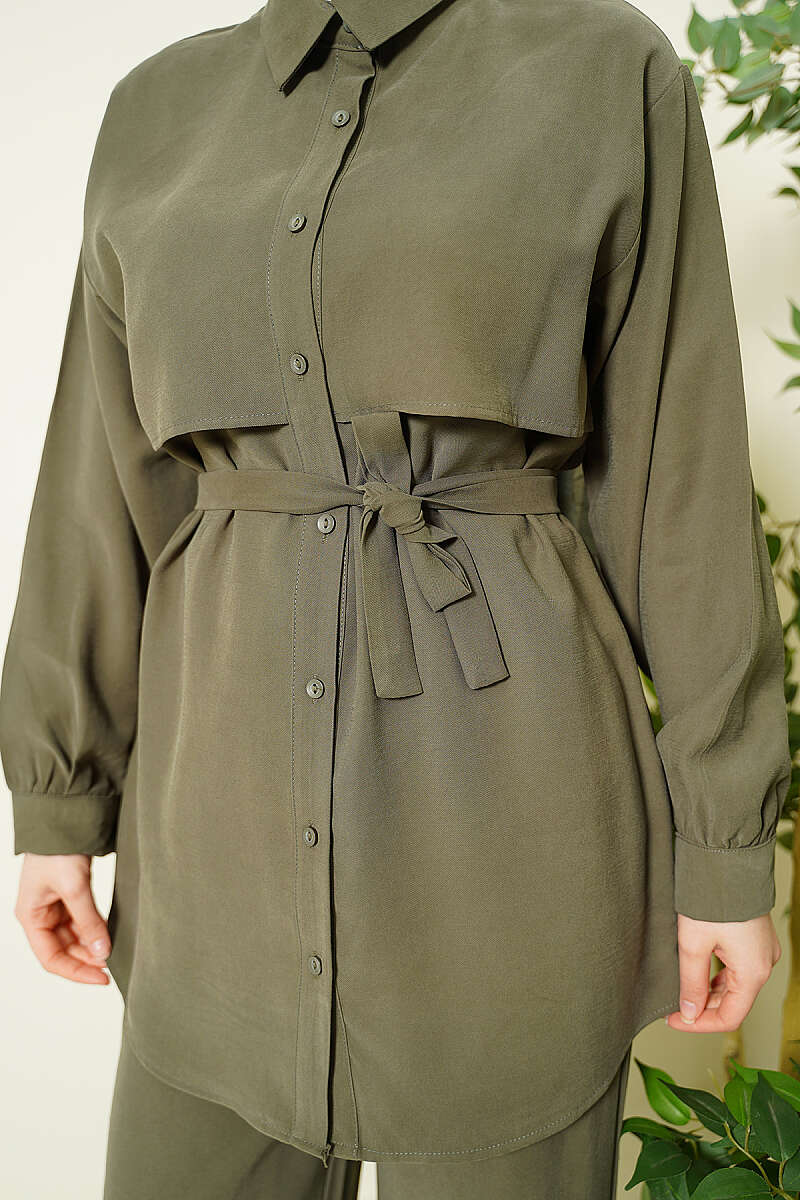 Göğüs Pelerin Kuşaklı Tensel İkili Takım Haki