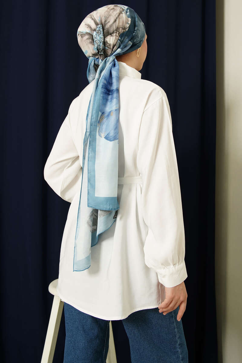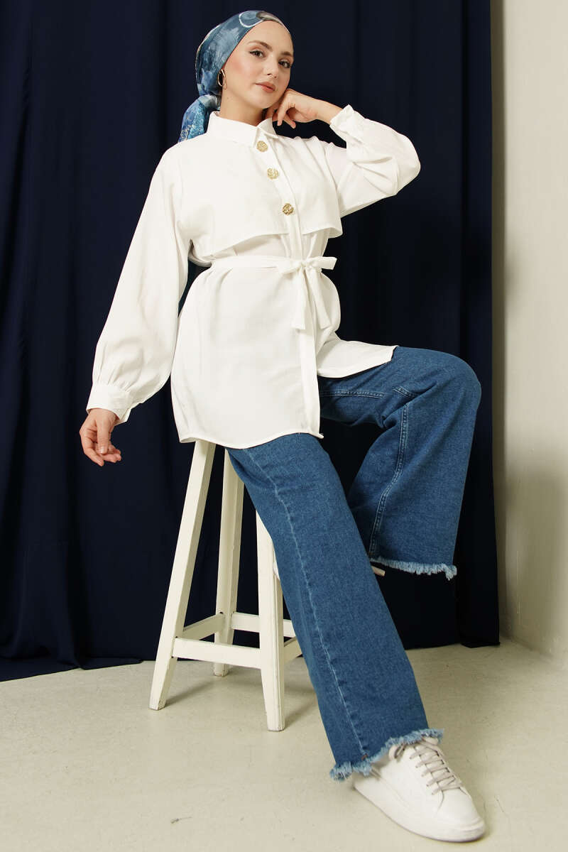 Göğüs Pelerinli Kuşaklı Modal Gömlek Ekru