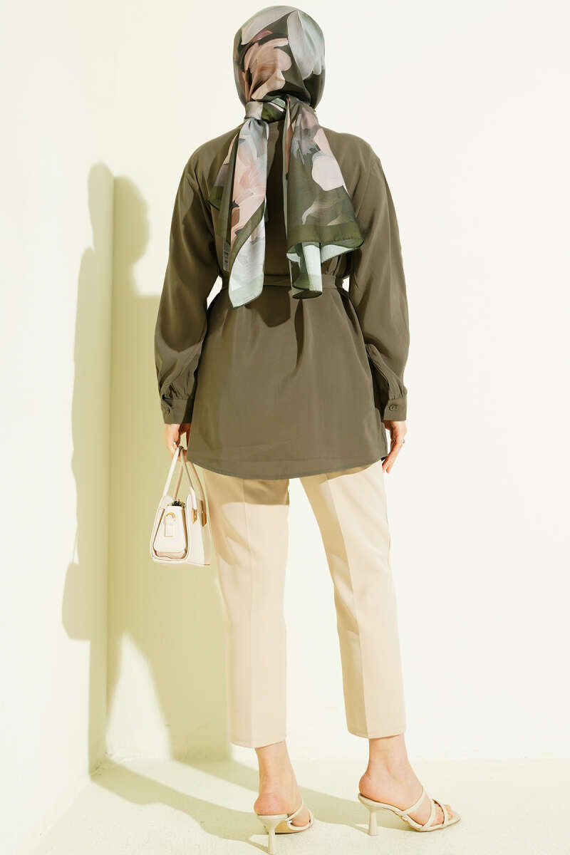 Göğüs Pelerinli Kuşaklı Modal Gömlek Haki