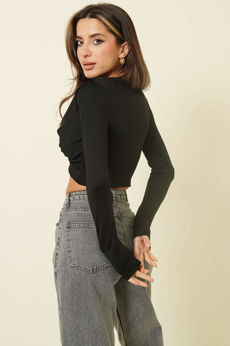 Göğüs Tokalı Uzun Kol Crop Lacivert