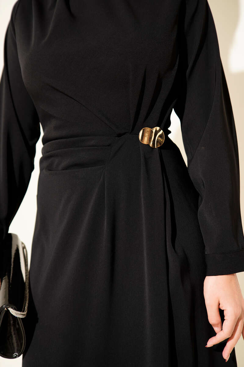 Gold Aksesuarlı Abiye Elbise Siyah
