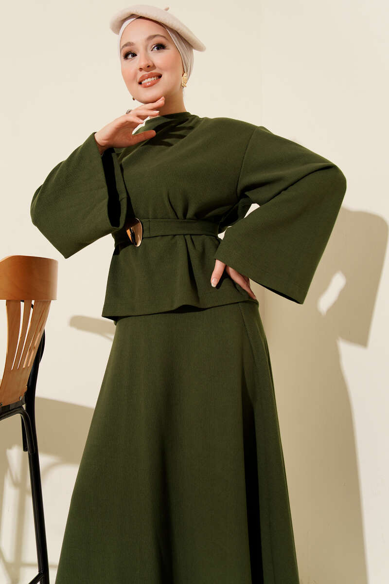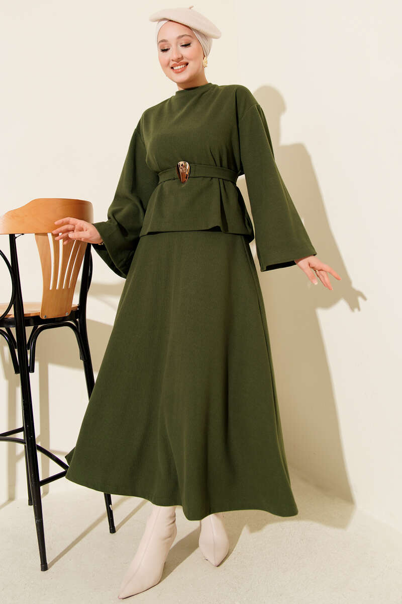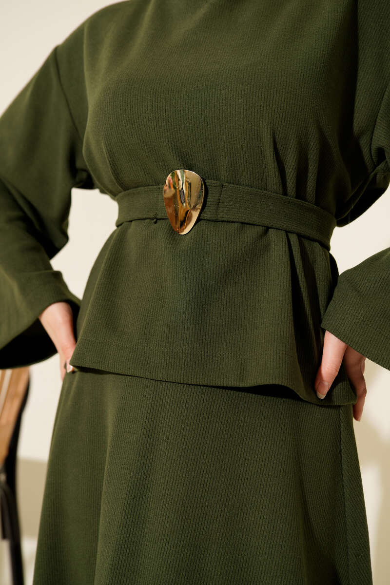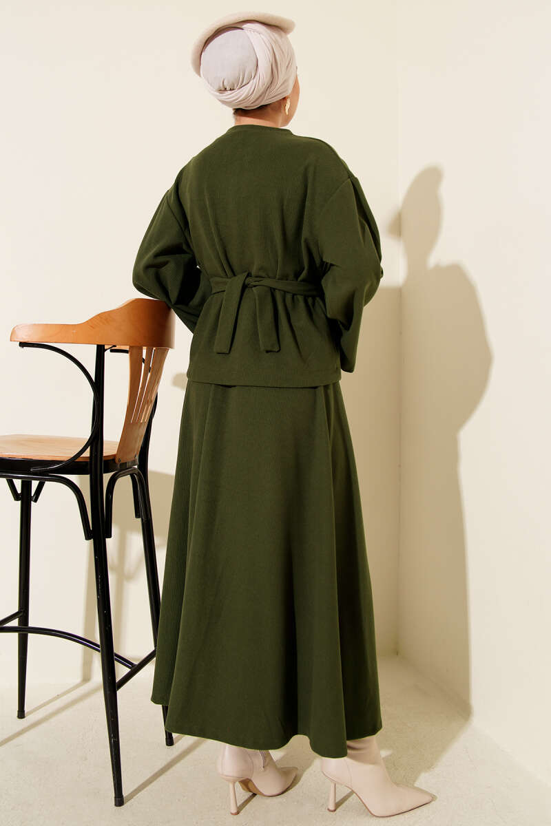 Taş Detaylı Kuşaklı İkili Takım Kahve