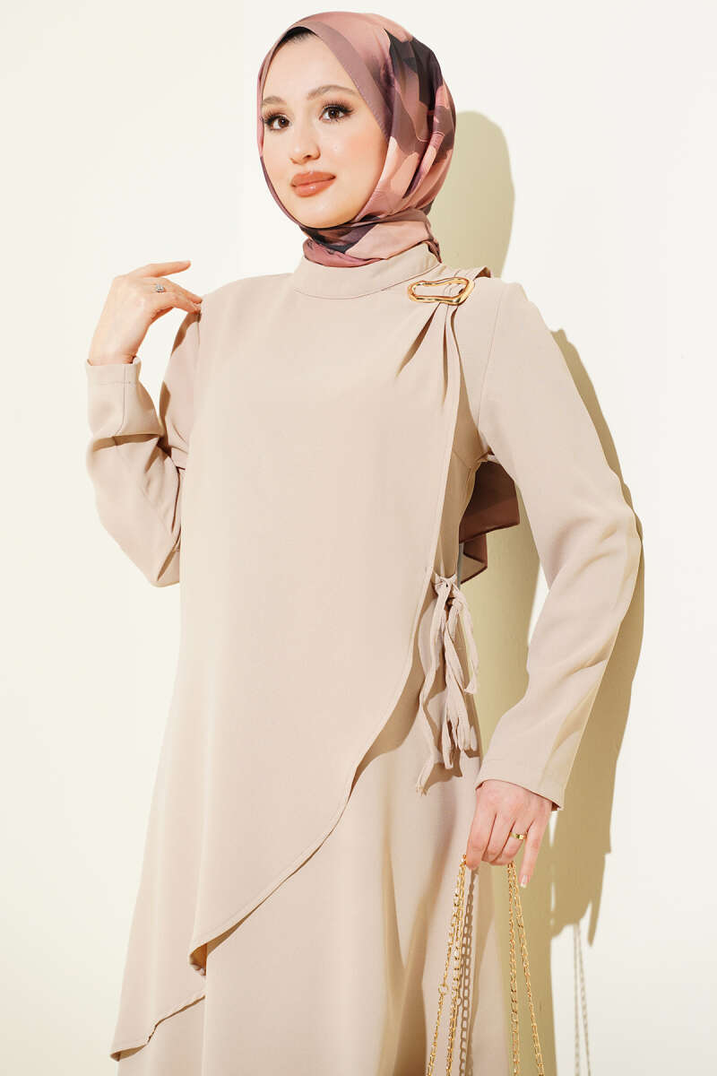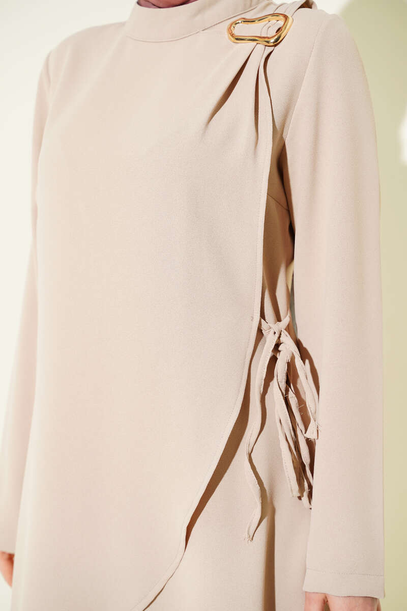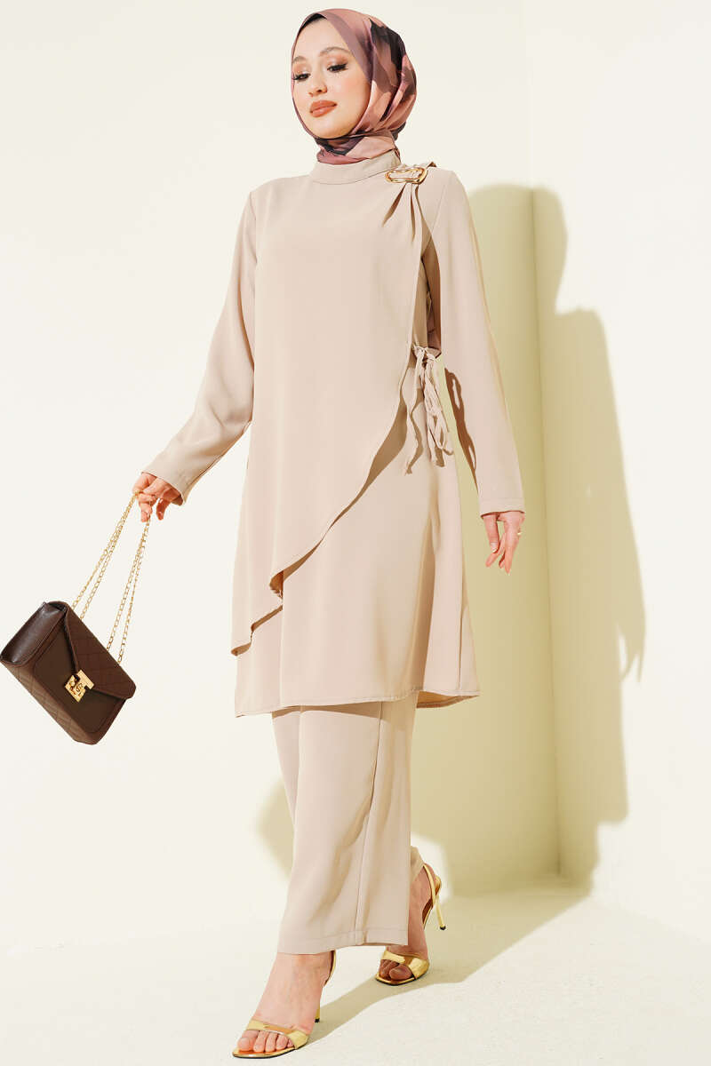 Gold Aksesuarlı İp Bağlamalı İkili Takım Bej