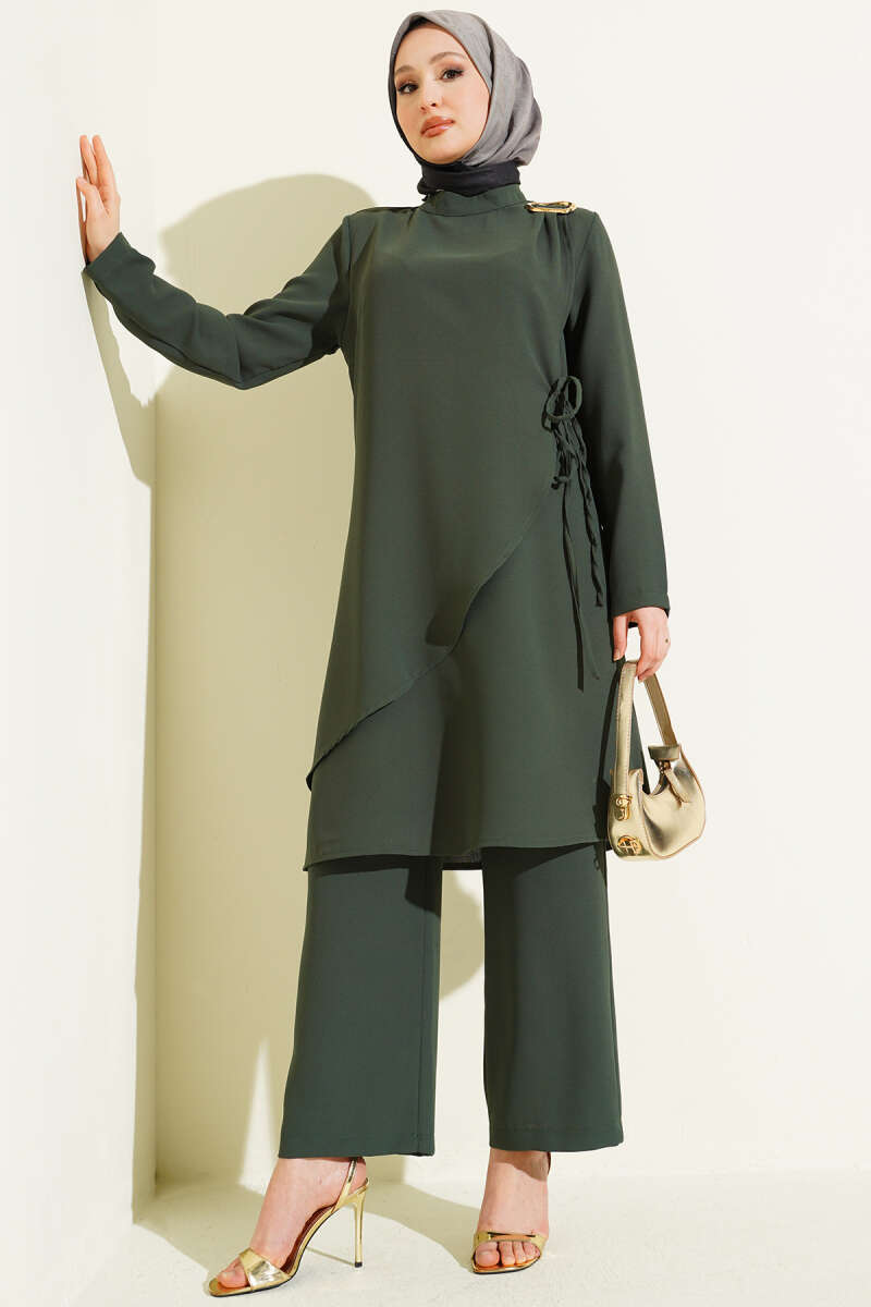 Gold Aksesuarlı İp Bağlamalı İkili Takım Zümrüt
