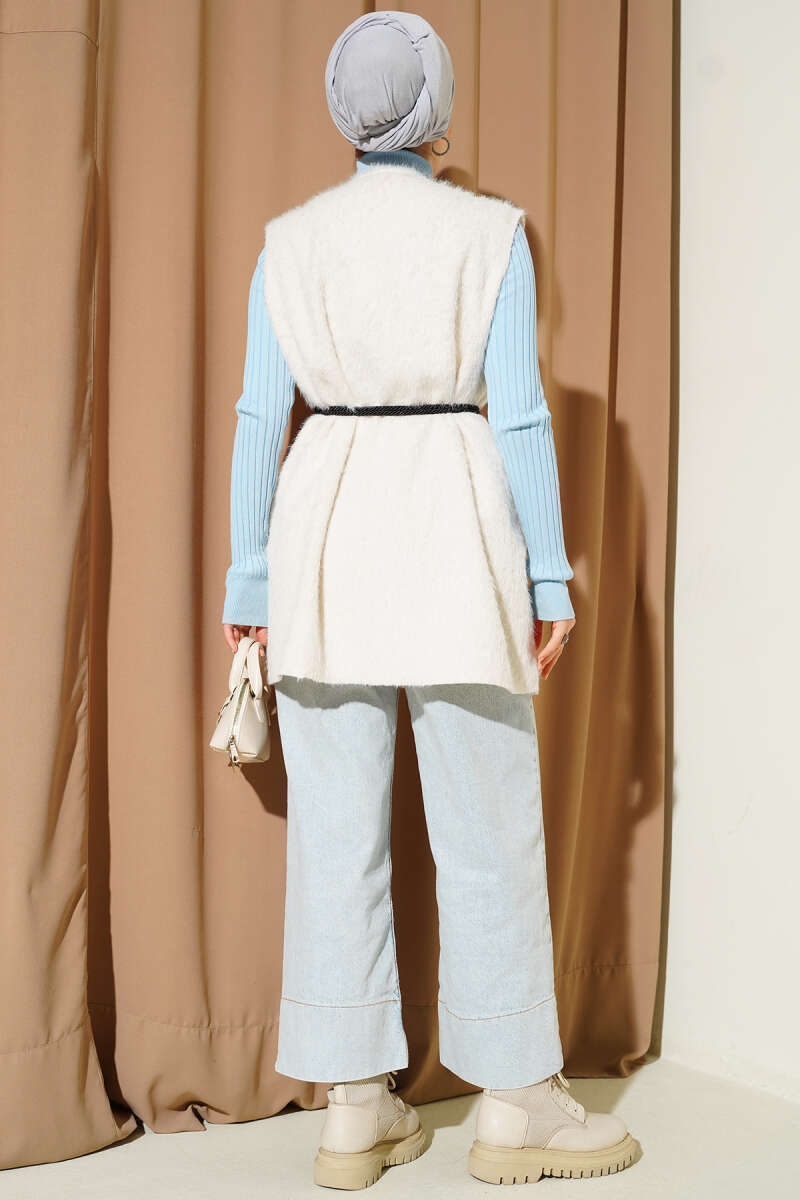 Gold Aksesuarlı Kuşaklı Sakallı Yelek Vizon