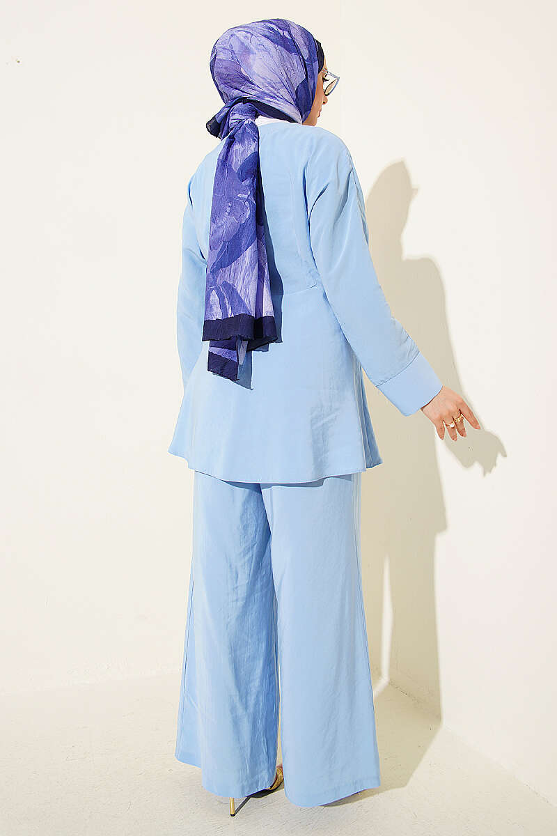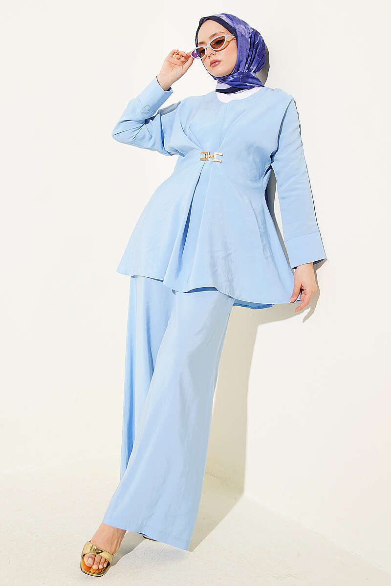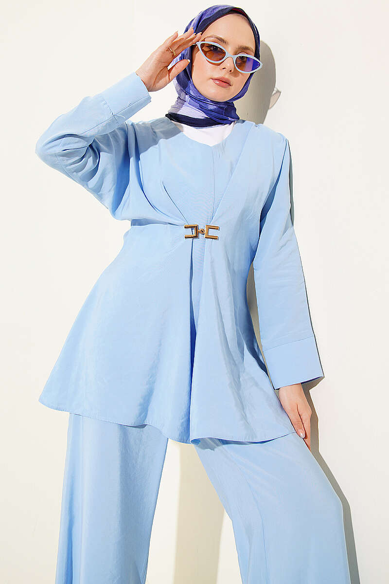 Gold Aksesuarlı V Yaka Modal İkili Takım Bebe Mavi
