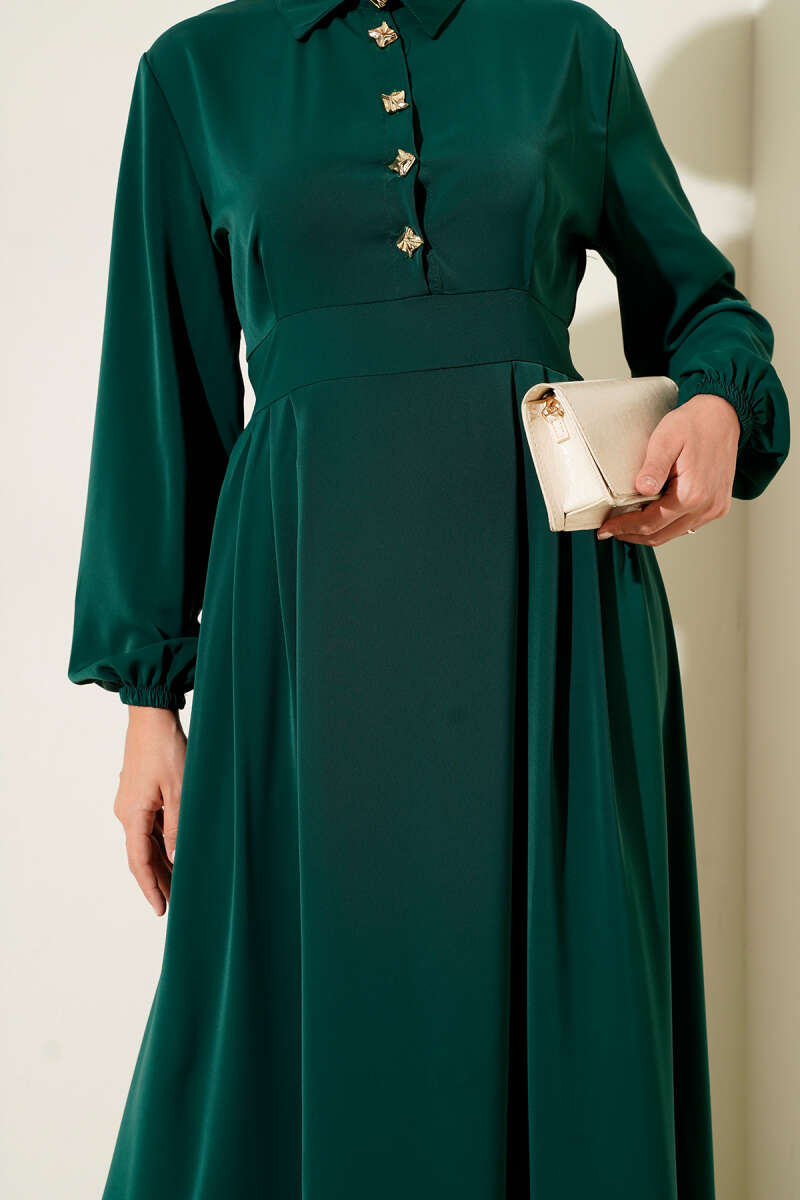 Kat Kat Kuşaklı Terikoton Elbise Haki