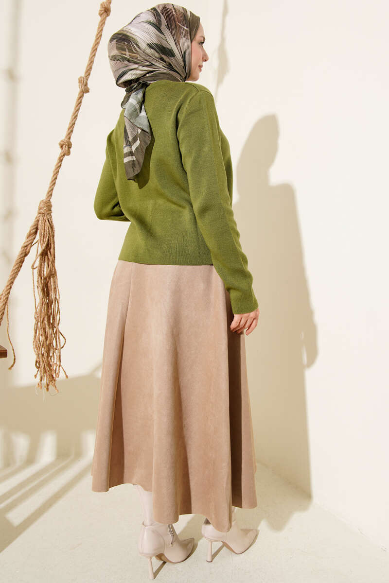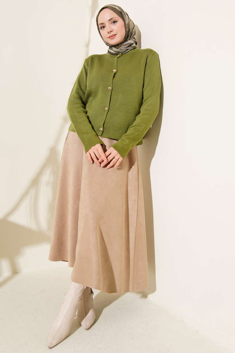 Çift Cepli Düğmeli Triko Hırka Haki