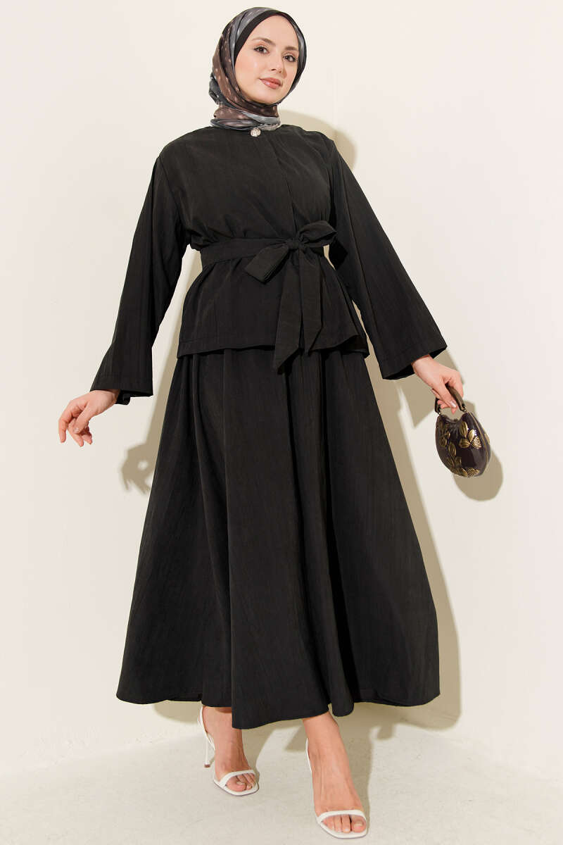Gold Düğme Detaylı Tensel Etekli İkili Takım Siyah