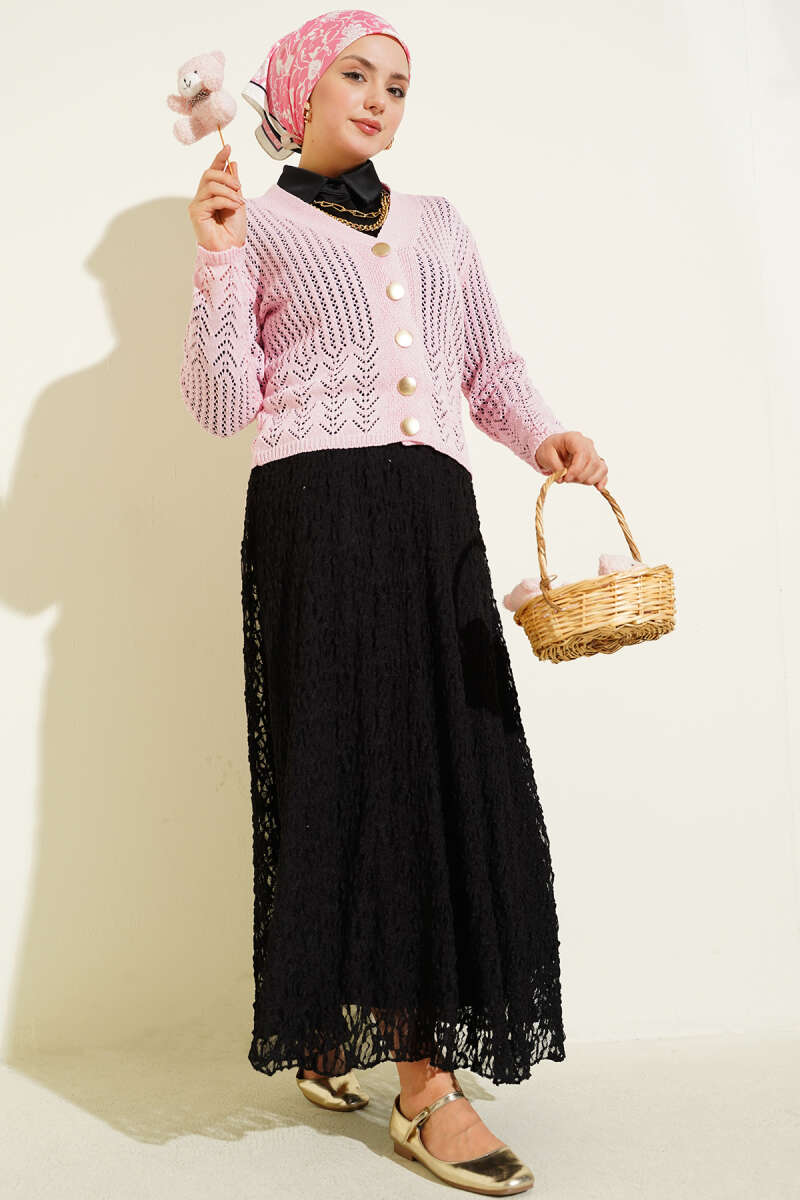 Bilek Kürklü Çıtçıtlı Body Siyah