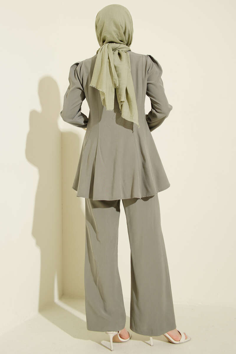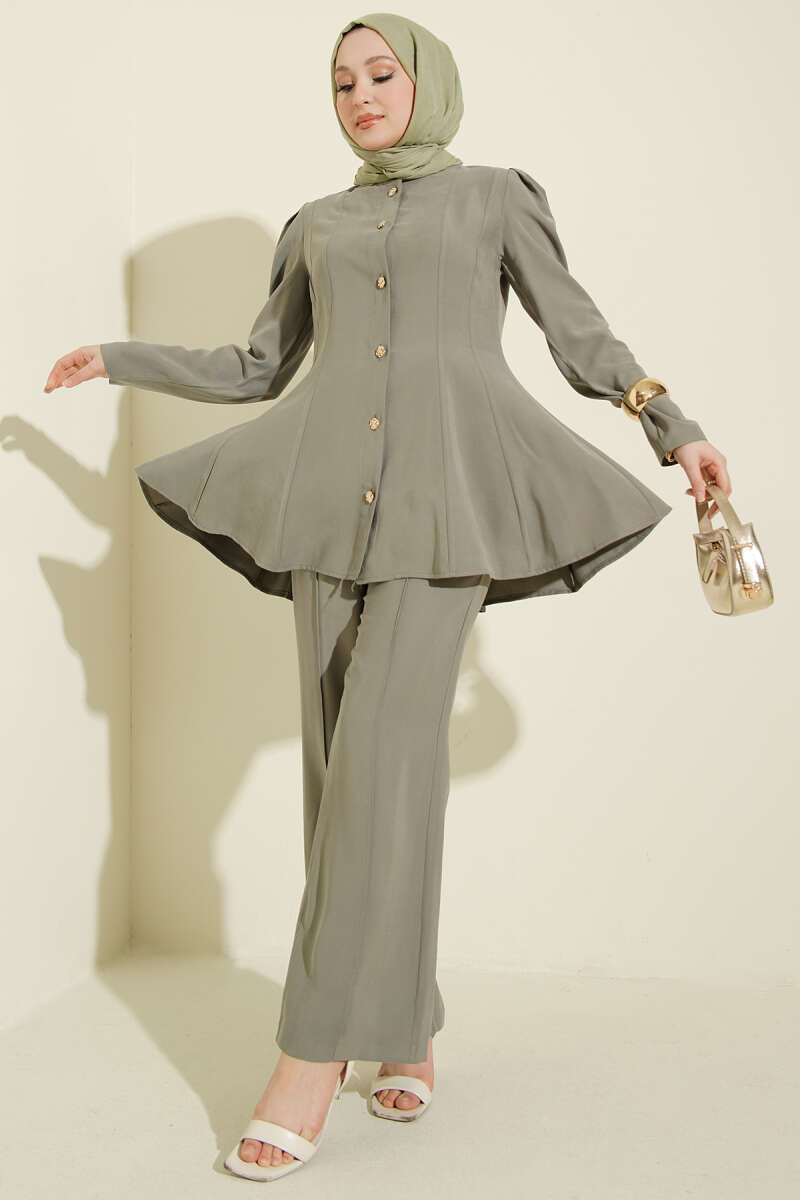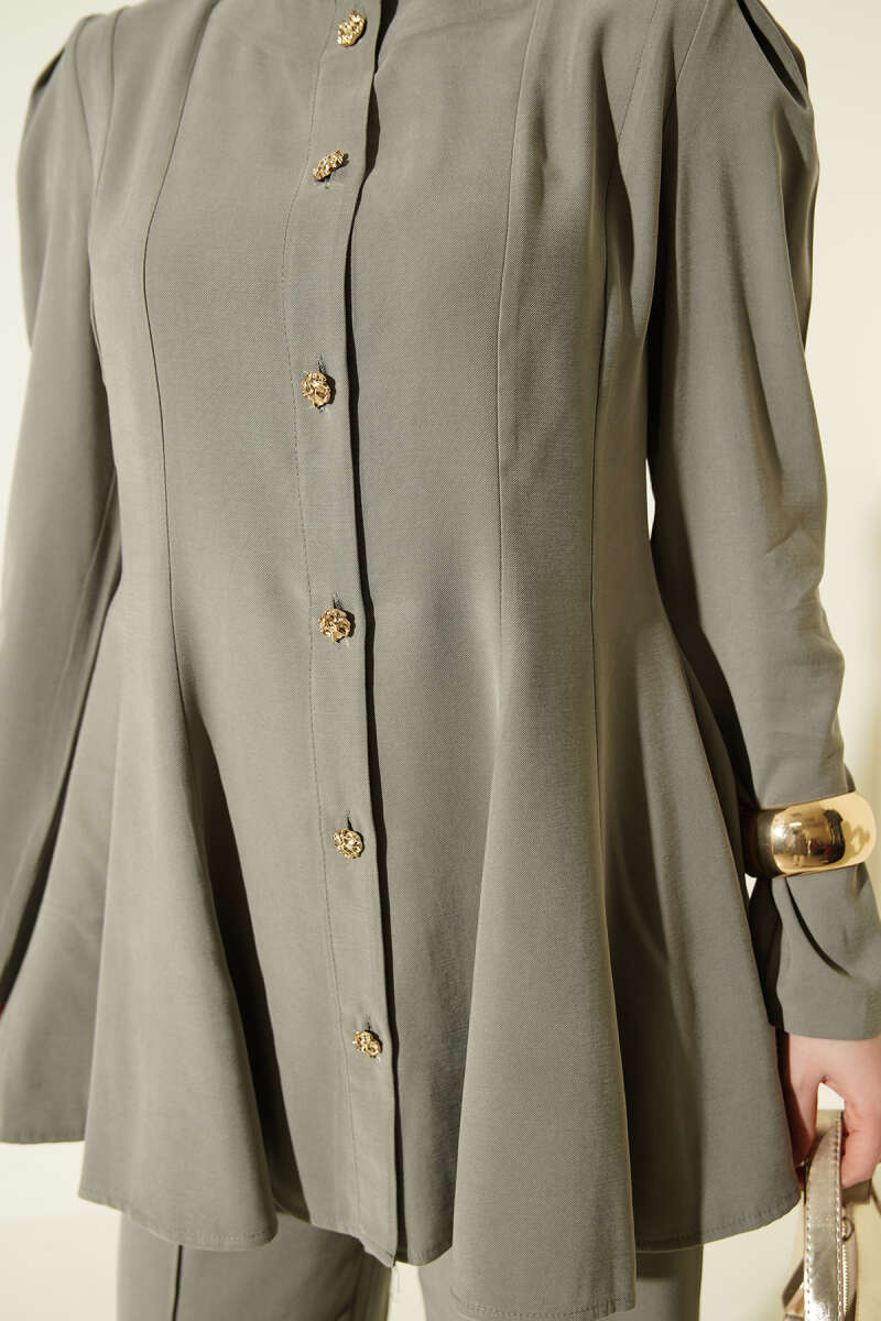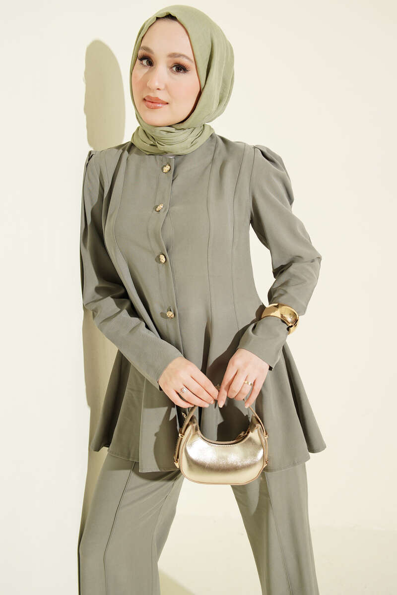 Gold Düğmeli Basic Tensel İkili Takım Haki
