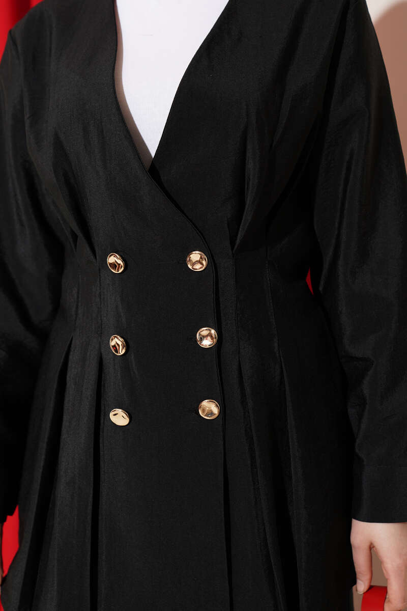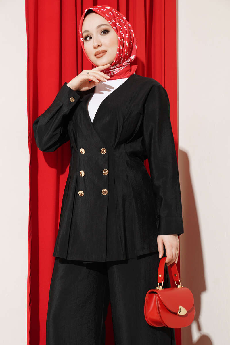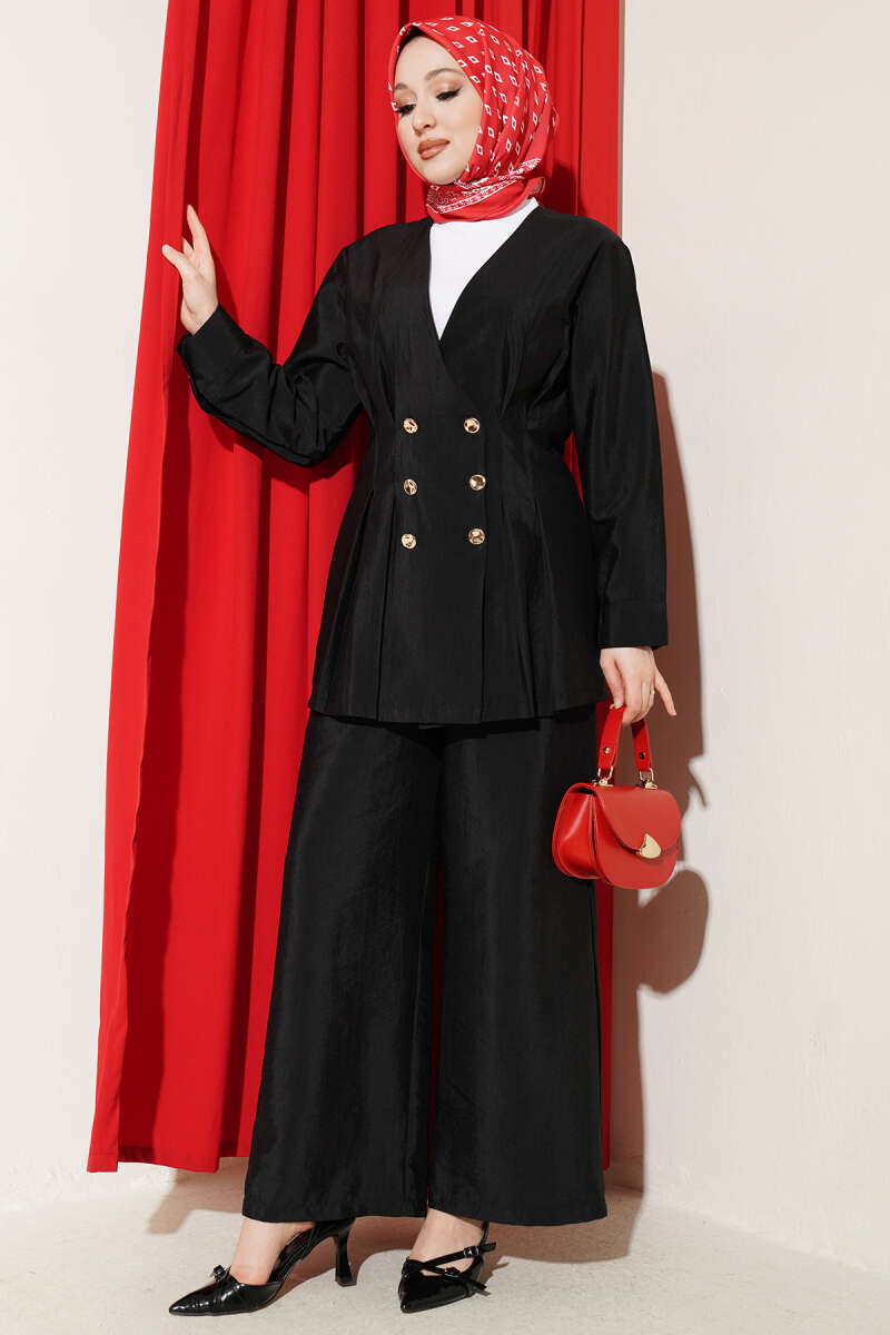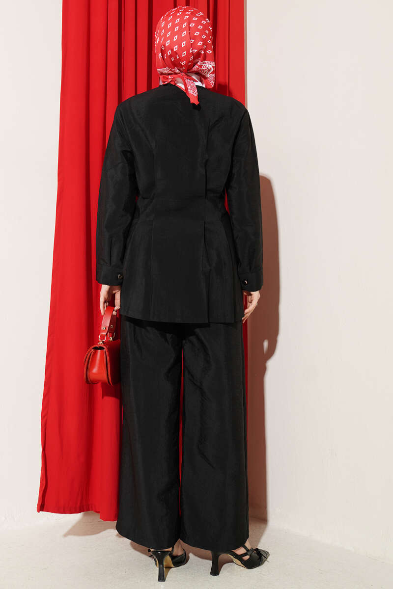 Gold Düğmeli Bel Pensli İkili Takım Siyah