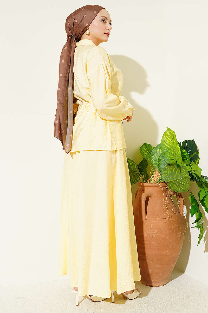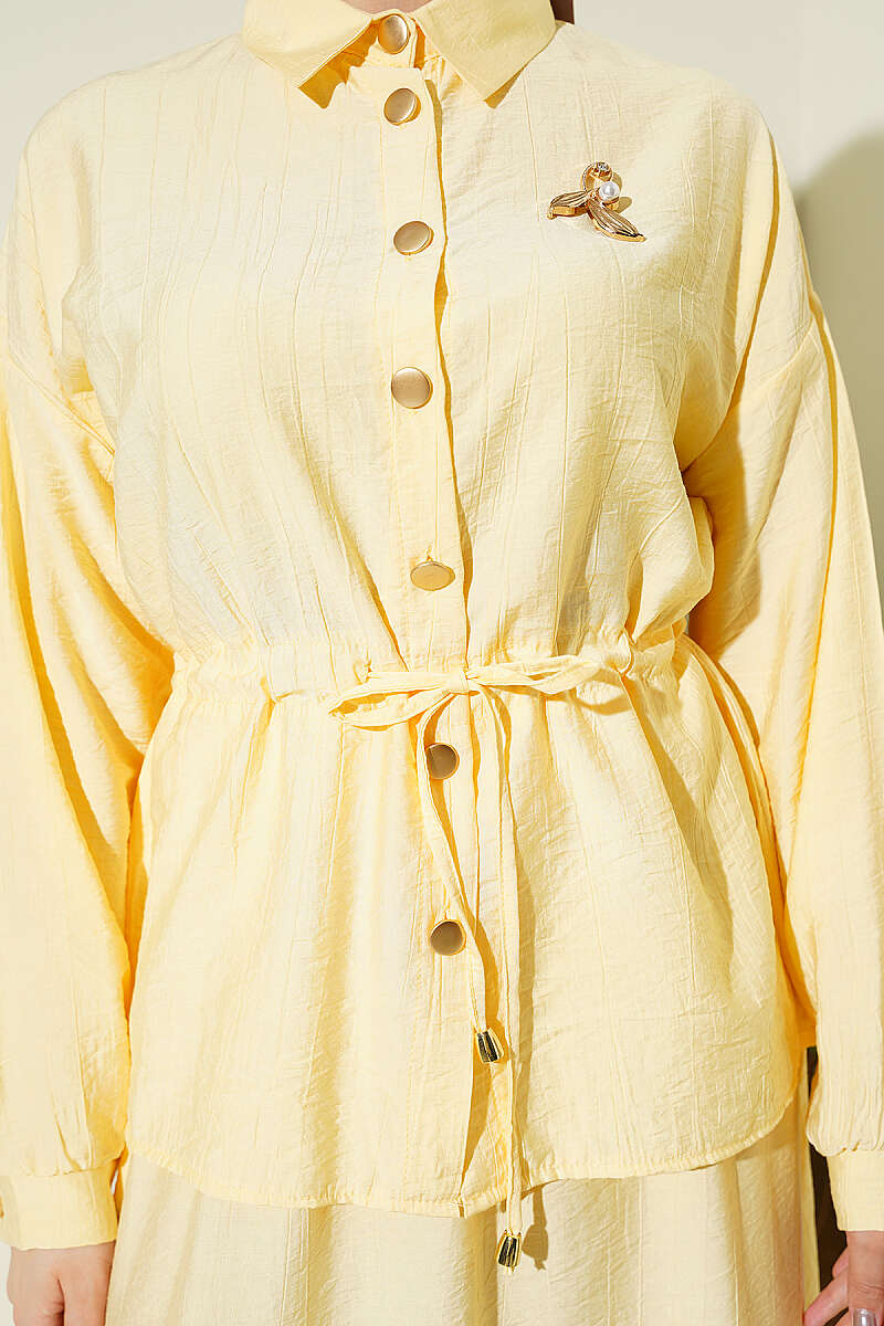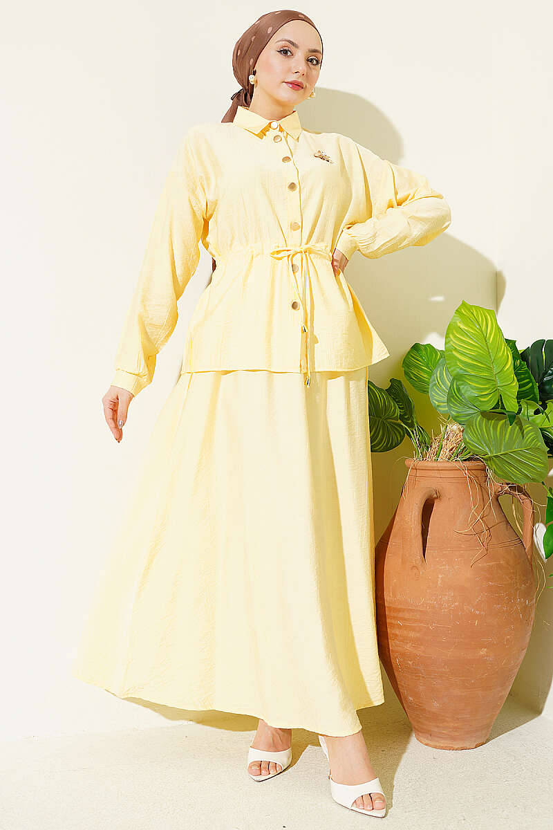 Gold Düğmeli Bel Tünelli Etekli Takım Sarı