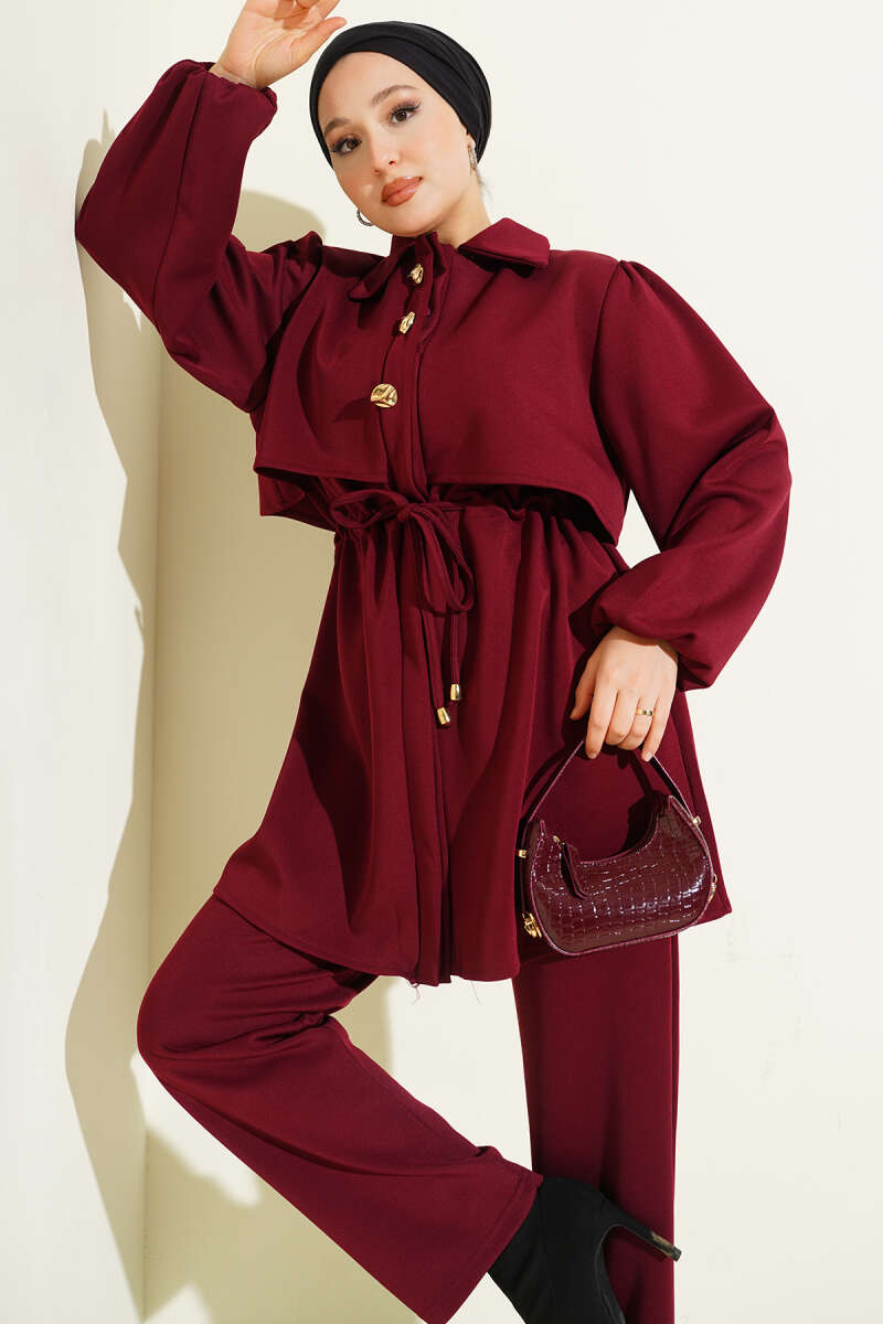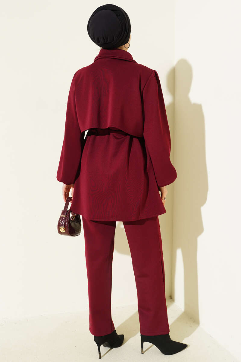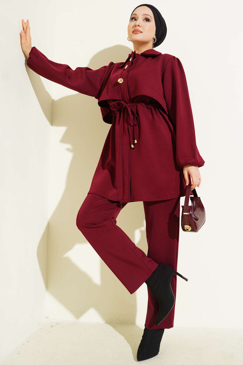 Yaka Çıtçıtlı Kapüşonlu İkili Takım Mor