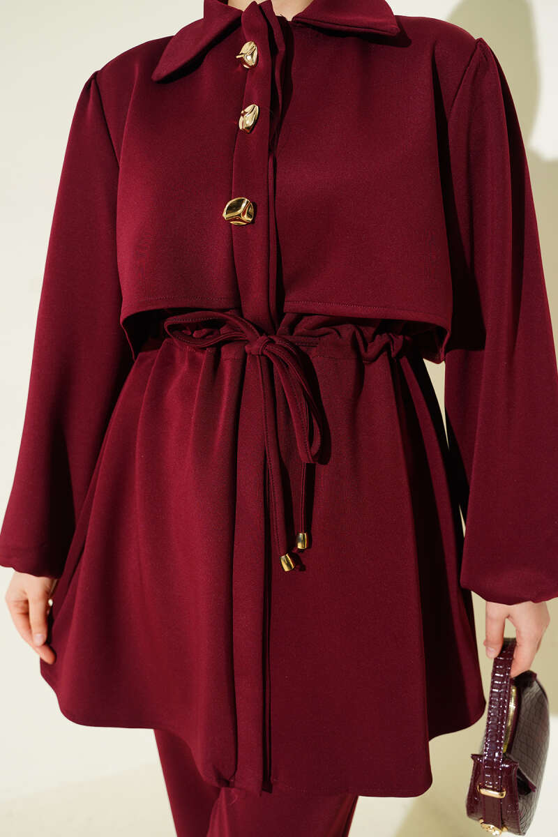 Kuşaklı Metal Düğmeli Kot İkili Takım Kot