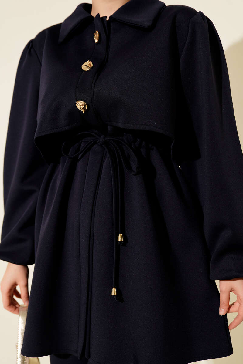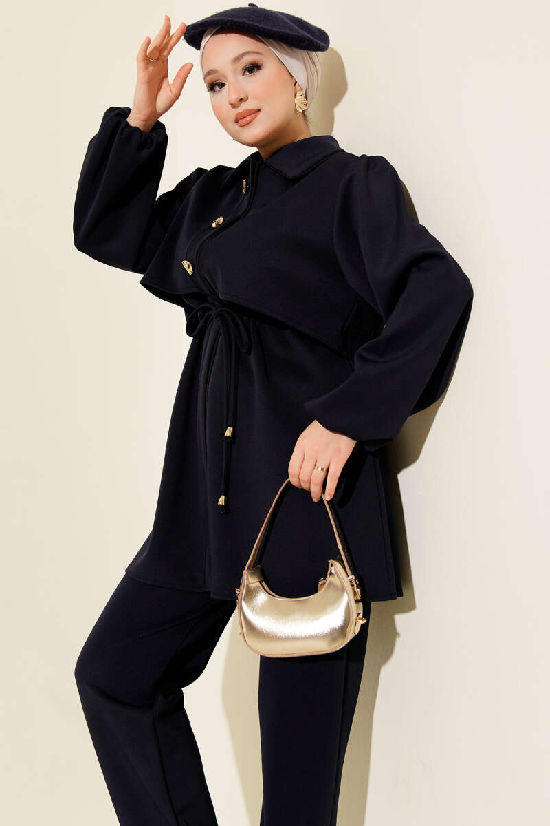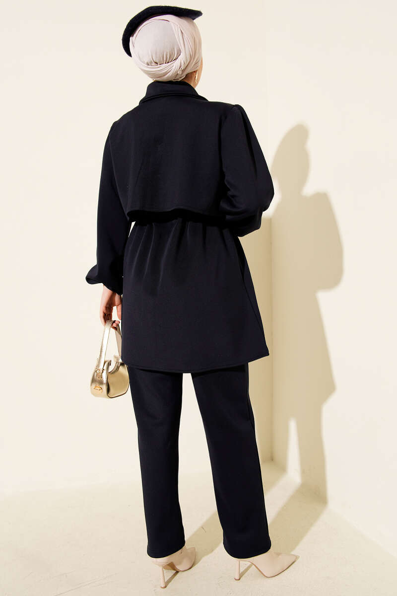 Kuşaklı Metal Düğmeli Kot İkili Takım Siyah