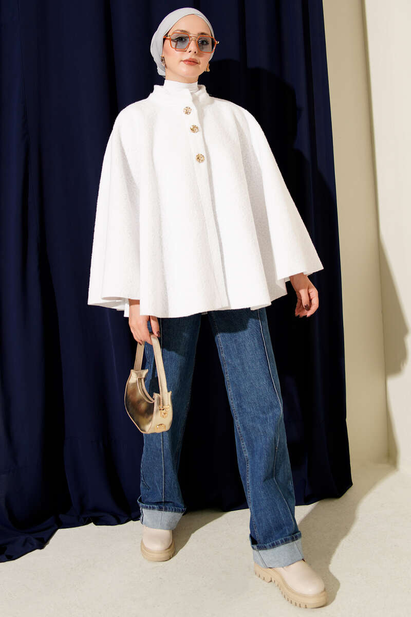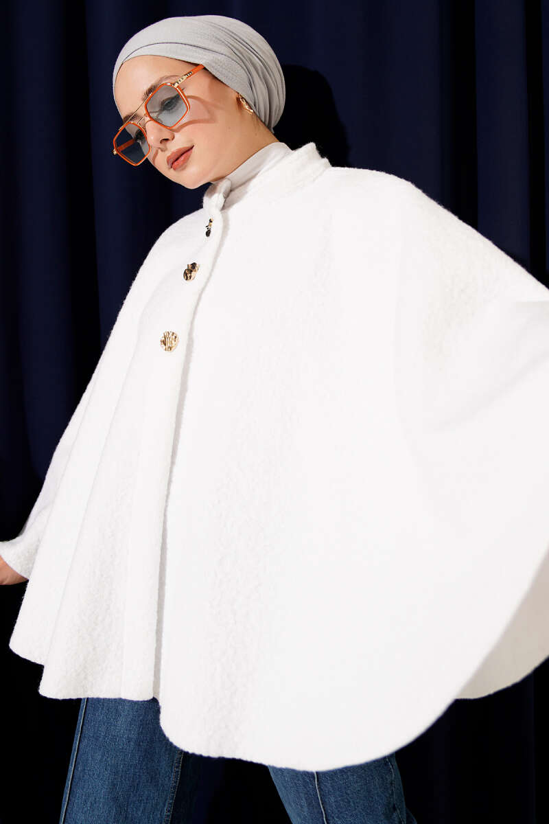 Çıtçıt Düğmeli Kapüşonlu Triko Panço Bej