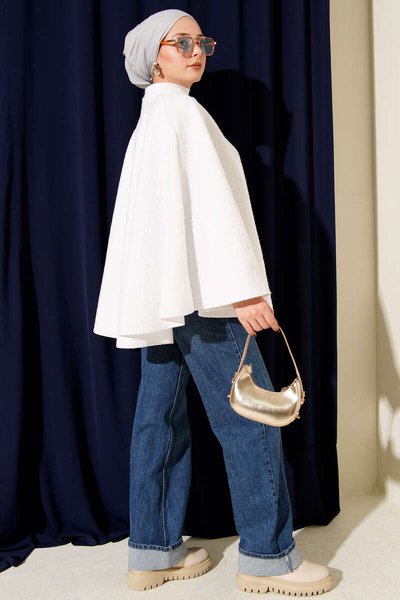 Gömlek Yaka Kuşaklı Kaşe Panço Bej