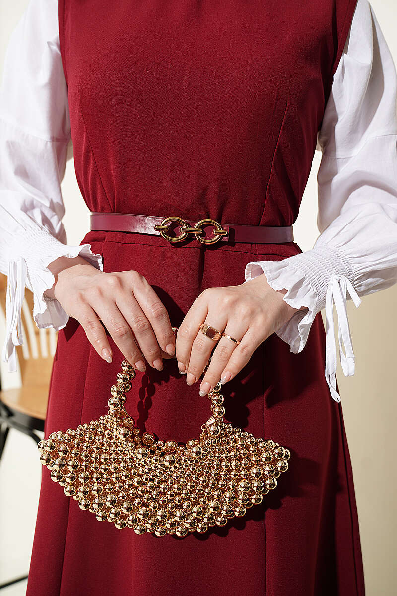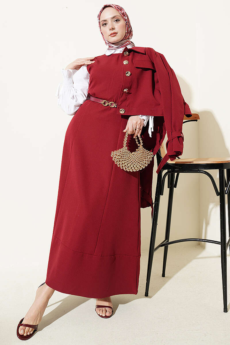 Gold Düğmeli Ceketli Jile Takım Bordo
