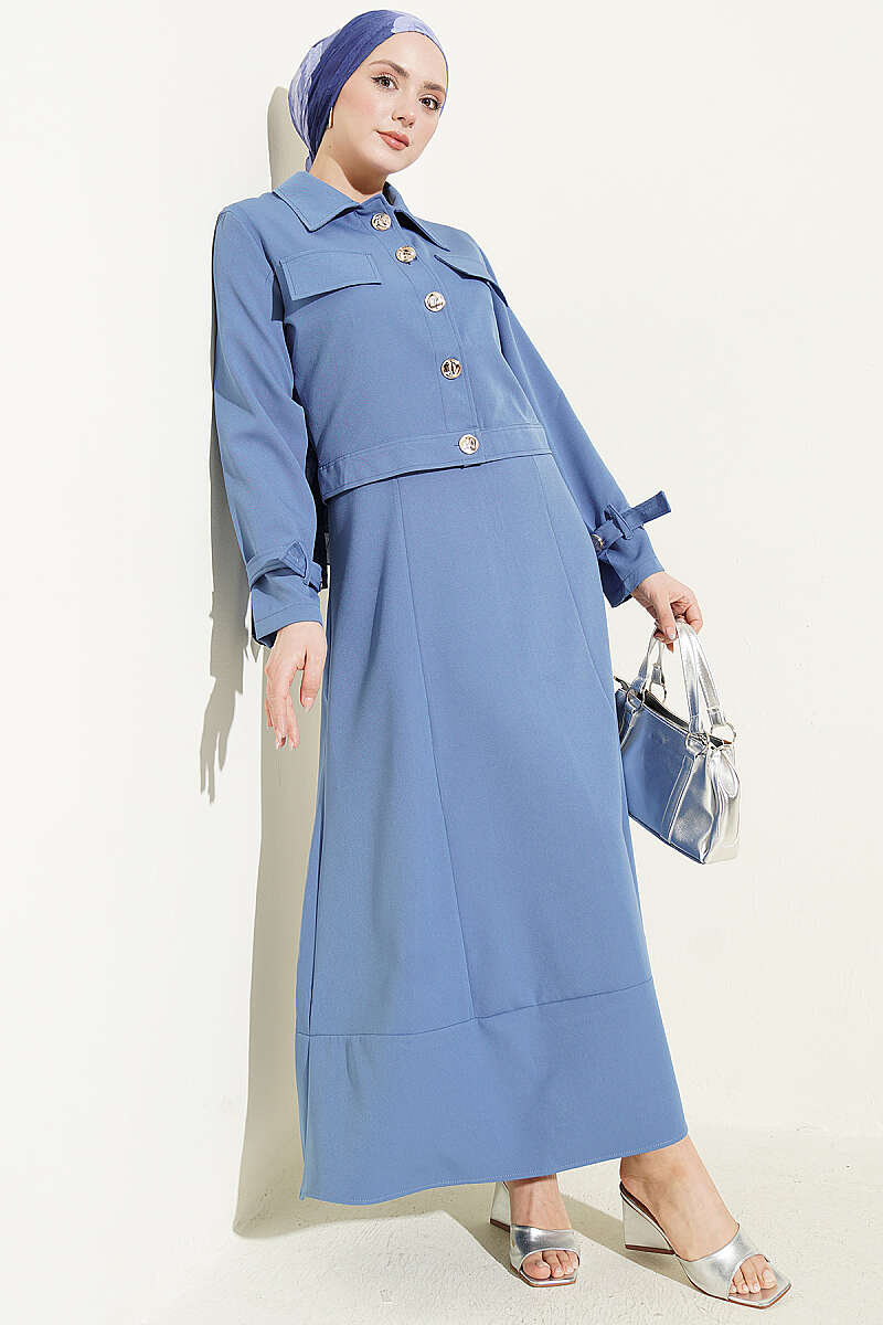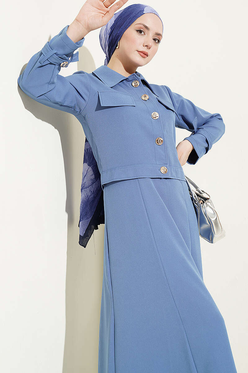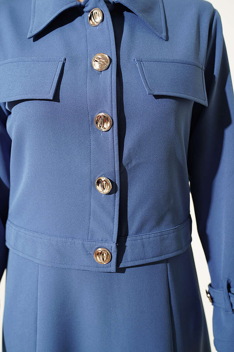 Gold Düğmeli Ceketli Jile Takım İndigo